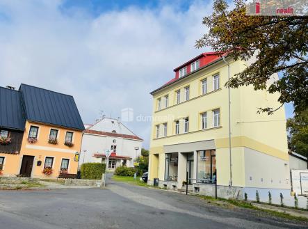 Naše společnost Vám zprostředkuje exkluzivně prodej zajímavého horského apartmánu (mezonetu) 1+1 o velikosti 33 m² v obci Abertamy, okr. Karlovy Vary. Jedná se o byt ve 3. a 4.patře cihlového domu. Byt je zařízen vkusným nábytkem a vybavením. K bytu náleží prostorný zděný sklep o velikosti 8 m² a jedno vyhrazené parkovací stání. Budova z třicátých let 20. století byla kompletně zrekonstruována v letech 2021 – 2022 a je zateplena a opatřena plastovými okny. V přízemí se nachází nebytové prostory v současné době půjčovna kol a prádelna. Pro obytnou část je samostatný vchod. Ve třech nadzemních podlaží se nachází celkem 5 jednotek a společná chodba se schodištěm. V domě je veřejný vodovod, kanalizace a každá jednotka má vlastní elektro rozvaděč s elektroměrem. Z apartmánu je vzhledem k jeho poloze krásný výhled zejména na vrchol Plešivec. Vzhledem k tomu, že před zadáním do inzerce nebyl předložen PENB, je tento byt v souladu s platným zákonem zařazen do energetické třídy G. Ev. číslo: 650310.