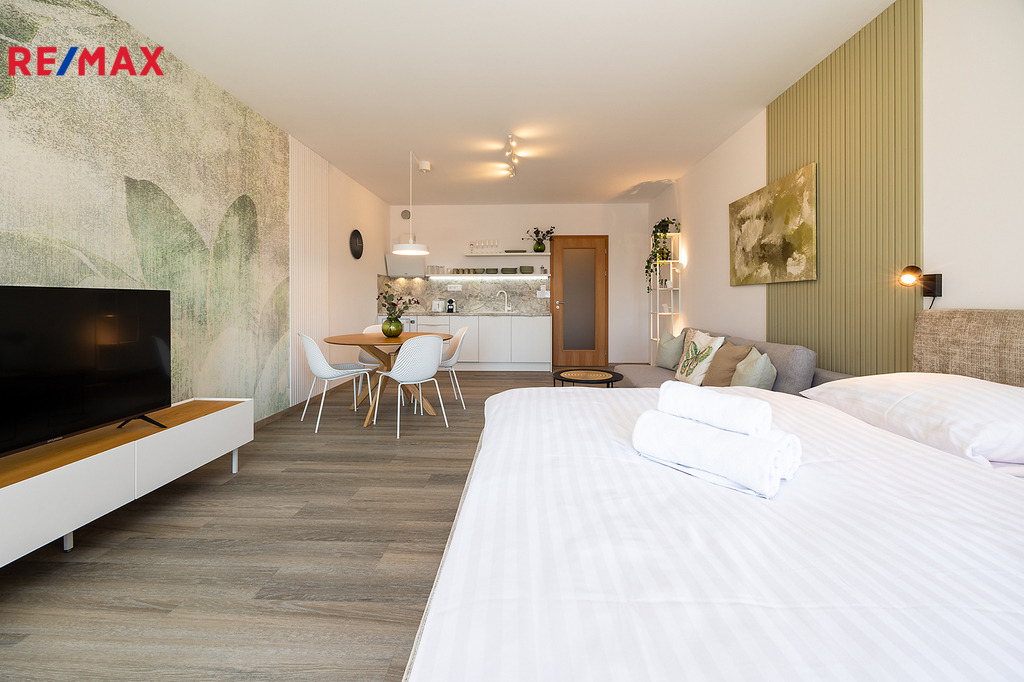Nabízíme vám jedinečnou příležitost pořídit si nový a plně vybavený apartmán v srdci Krušných hor – přímo na malebném náměstí horského městečka Abertamy. Tento stylový apartmán o dispozici 1+kk je ideální volbou pro páry nebo jednotlivce hledající kombinaci investice s možností vlastního využití během celého roku. Komfort, kvalitní vybavení, výhledy na Plešivec a perfektní umístění jen pár minut od sjezdovek, běžkařských tratí a turistických tras. Co vás nadchne: • plně vybavený interiér – designový nábytek, kuchyň, spotřebiče i dekorace v ceně • společná sauna pro majitele domu – ideální po dni na horách • moderní lyžárna – bezpečné a pohodlné zázemí pro sportovní vybavení • vlastní parkovací stání přímo u domu • okamžitý přístup do přírody – hory, lesy, běžkařské trasy a lyže za rohem • Boží Dar a Klínovec do 15 minut autem Apartmán (bytová jednotka) o dispozici 1+kk a celkové ploše 41 m² se nachází v novém bytovém domě Abertamy Platz , ve 3. patře s výtahem. Je nově a exkluzivně zařízen, připraven k okamžitému nastěhování. Celý bytový dům vznikl kompletní rekonstrukcí bývalého hotelu v roce 2023. Neváhejte se na mě obrátit, ráda Vás touto úžasnou nemovitostí provedu.