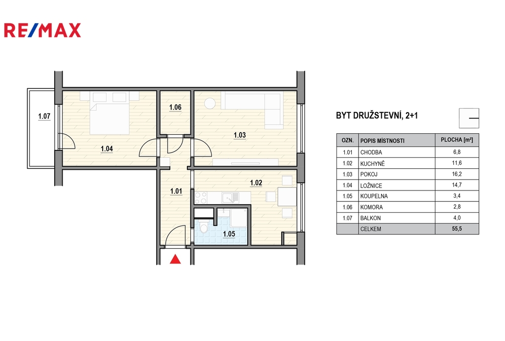 Pronájem bytu, 2+1, 56 m²