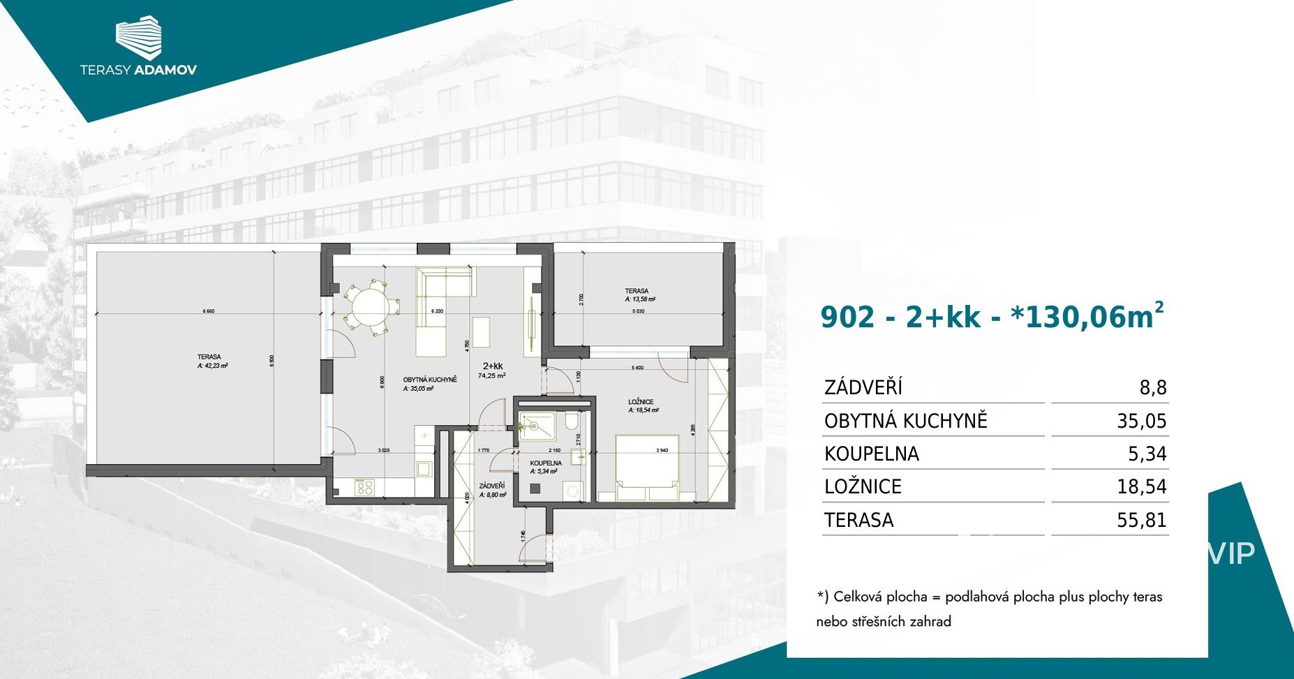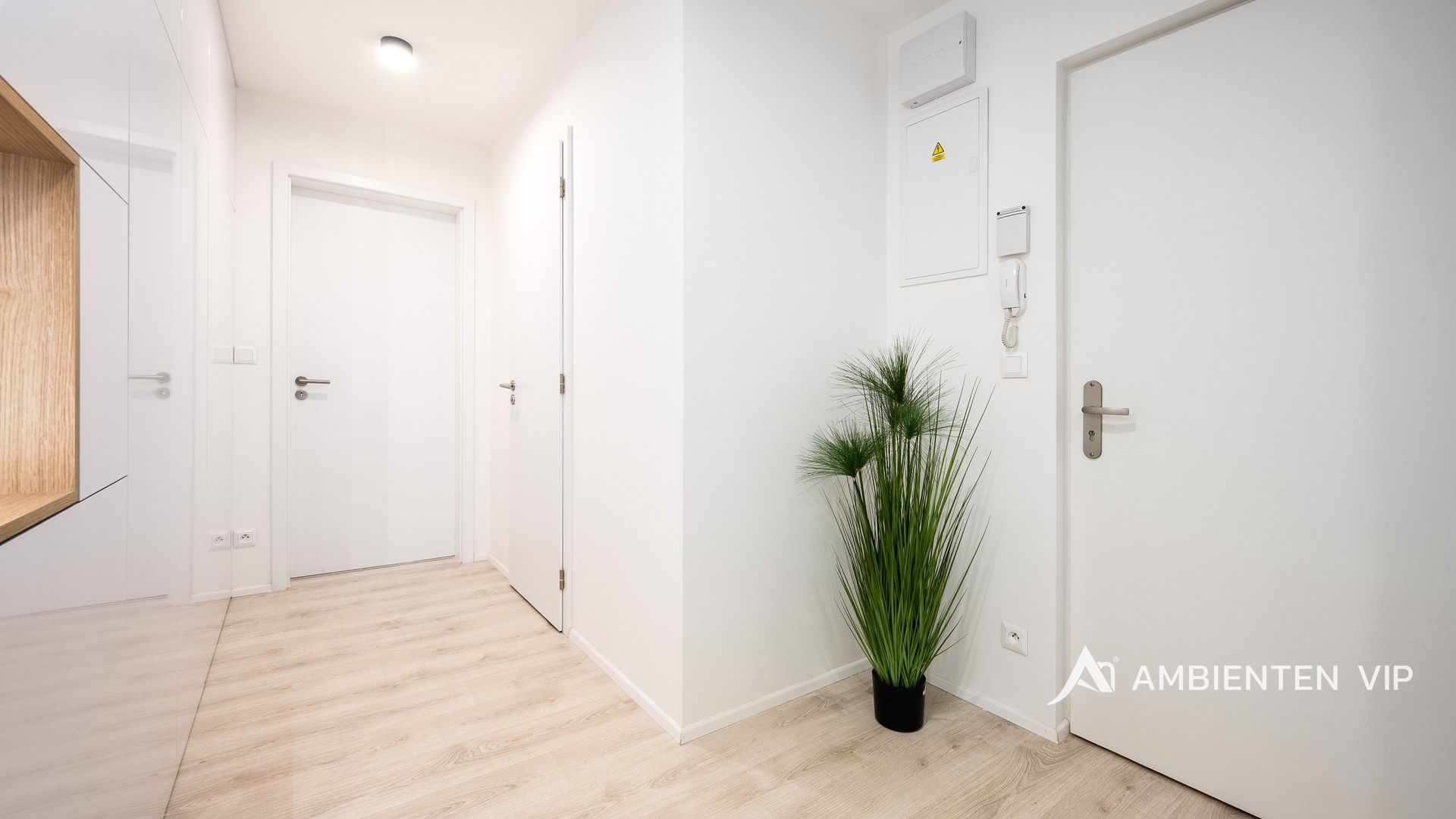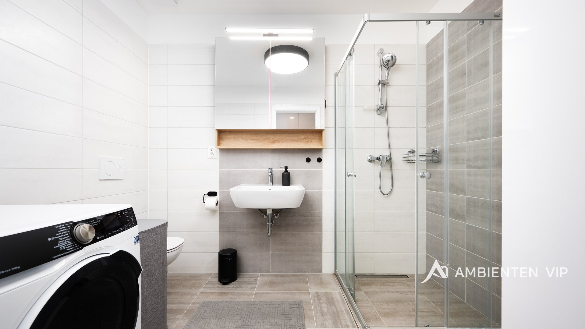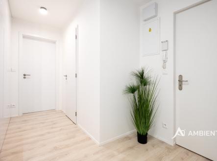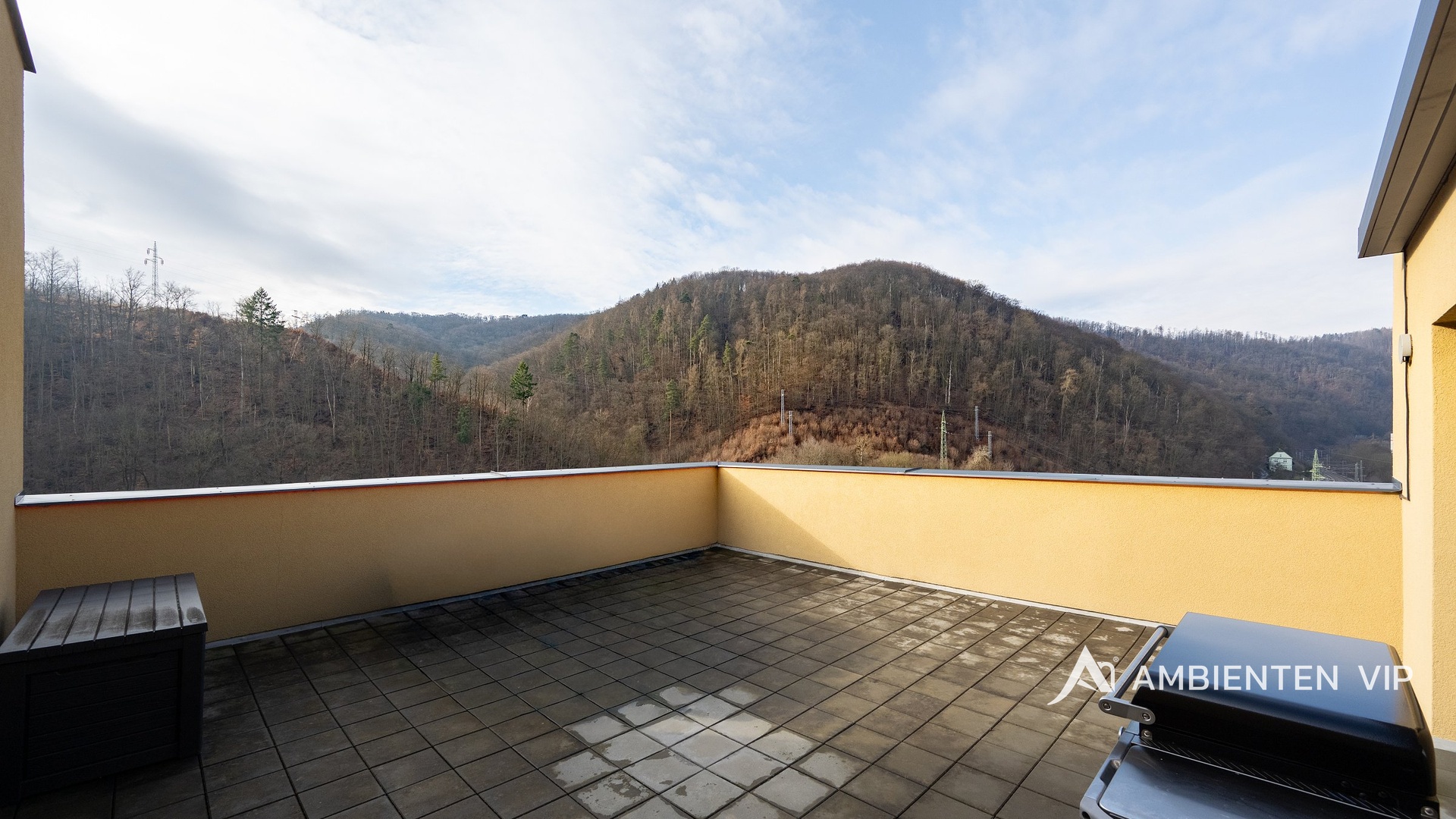 AMBIENTEN VIP vám nabízí exkluzivně ke koupi výjimečný byt o dispozici 2+kk podlahové ploše 74 m², umístěný v 9. nadzemním podlaží moderního bytového domu Terasy Adamov z roku 2021. Realizace interiérů bytu proběhla v roce 2024. K bytu náleží dvě prostorné terasy – západně orientovaná terasa o velikosti 13,58 m² a hlavní jihozápadní terasa o rozloze 42,23 m², vybavená markýzou, přívodem elektřiny a vody, ideální pro posezení s rodinou či přáteli s výhledem do okolních lesů. K bytu náleží parkovací stání přímo před domem. Interiér byl luxusně navržen studiem GALA Design s maximálním důrazem na komfort, funkčnost a nadčasovou estetiku. Dominantou bytu je obytný prostor o velikosti 35 m² s plně vybaveným kuchyňským koutem a spotřebiči Electrolux vyšší řady. Samozřejmostí je ambientní osvětlení, které v kombinaci s jihozápadní orientací zajišťuje dostatek přirozeného světla po celý den. Na západně orientovaných oknech jsou instalovány předokenní žaluzie. V bytě se nachází dvě klimatizační jednotky. Ložnice nabízí nejen klid a soukromí, ale také dostatek úložných prostor v podobě designových vestavěných skříní. Dámy jistě ocení stylový toaletní stolek se zrcadlem, který je elegantní i praktickou součástí interiéru. Další úložné prostory jsou chytře řešeny také v předsíni a koupelně, takže byt působí vzdušně a organizovaně. Velkou přidanou hodnotou je výška podlaží, která spolu s orientací bytu zajišťuje nejen dostatek světla, ale také pocit soukromí a klidu, který v nižších patrech často chybí. Výhledy do zeleně a lesů umocňují atmosféru bydlení. Majitel si nemovitost navrhoval pro vlastní potřeby, a proto se zde nešetřilo na kvalitě ani detailech. Byt se prodává kompletně zařízený, bez nutnosti dalších investic. Stačí se nastěhovat s osobními věcmi. Součástí nabídky jsou dva sklepy – jeden přímo na patře před bytem, druhý v 1. NP budovy a parkování. Bytový dům je vytápěn tepelnými čerpadly a splňuje energetickou třídu B – velmi úsporná, což zajišťuje nízké provozní náklady. Terasy Adamov jsou koncipovány s důrazem na komfort každodenního života a v bezprostředním okolí naleznete služby, obchody a občanskou vybavenost, které eliminují nutnost každodenního dojíždění. Přesto zůstává bydlení klidné, s přímým napojením na přírodu a rekreační zóny. Lokalita je ideální volbou pro ty, kteří chtějí bydlet v zeleni, ale neztratit kontakt s Brnem (cca 20 minut autem i MHD). Adamov je zároveň branou do Moravského krasu a nabízí kompletní infrastrukturu, školy, zdravotní péči i bohaté sportovní a kulturní vyžití. Byt je ideální volbou pro náročného klienta, který hledá kombinaci soukromí, komfortu a nadčasového designu. Kombinace moderní architektury, kvalitního provedení, energetické úspornosti a atraktivní lokality z něj činí mimořádně zajímavou příležitost. Bližší informace vám velice rád sdělím po telefonu nebo na osobní prohlídce. V případě zájmu o prohlídku mě neváhejte kontaktovat. Provize RK je hrazena nad rámec kupní ceny stranou kupující.