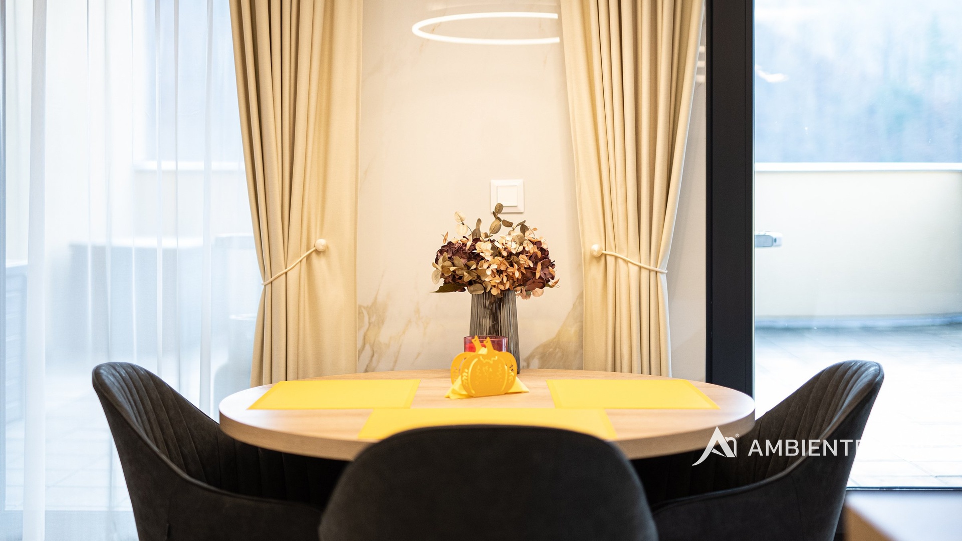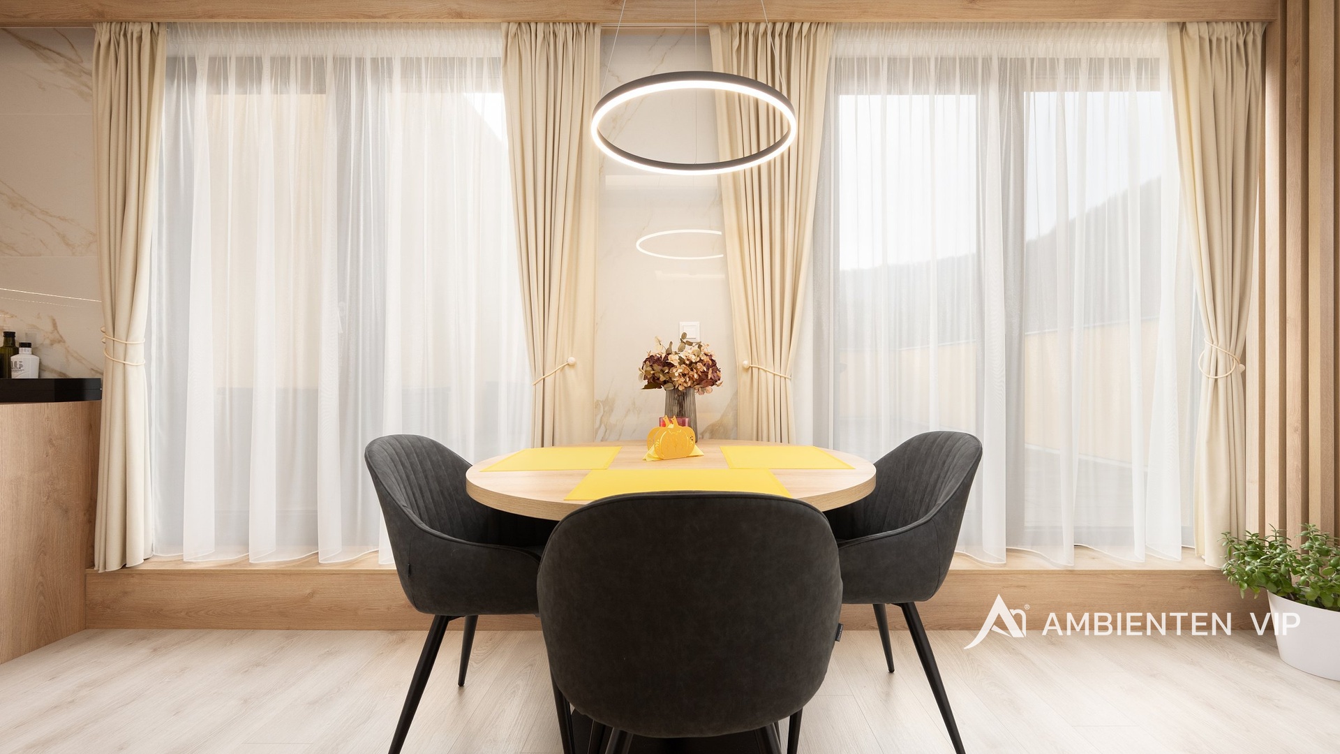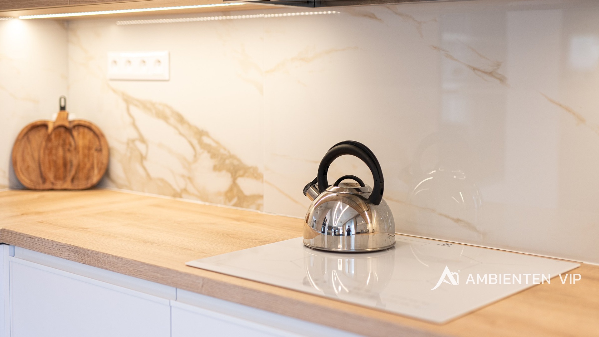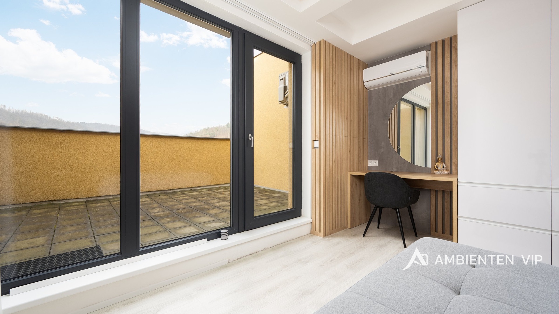 AMBIENTEN VIP vám nabízí exkluzivně ke koupi výjimečný byt o dispozici 2+kk podlahové ploše 74 m², umístěný v 9. nadzemním podlaží moderního bytového domu Terasy Adamov z roku 2021. Realizace interiérů bytu proběhla v roce 2024. K bytu náleží dvě prostorné terasy – západně orientovaná terasa o velikosti 13,58 m² a hlavní jihozápadní terasa o rozloze 42,23 m², vybavená markýzou, přívodem elektřiny a vody, ideální pro posezení s rodinou či přáteli s výhledem do okolních lesů. K bytu náleží parkovací stání přímo před domem. Interiér byl luxusně navržen studiem GALA Design s maximálním důrazem na komfort, funkčnost a nadčasovou estetiku. Dominantou bytu je obytný prostor o velikosti 35 m² s plně vybaveným kuchyňským koutem a spotřebiči Electrolux vyšší řady. Samozřejmostí je ambientní osvětlení, které v kombinaci s jihozápadní orientací zajišťuje dostatek přirozeného světla po celý den. Na západně orientovaných oknech jsou instalovány předokenní žaluzie. V bytě se nachází dvě klimatizační jednotky. Ložnice nabízí nejen klid a soukromí, ale také dostatek úložných prostor v podobě designových vestavěných skříní. Dámy jistě ocení stylový toaletní stolek se zrcadlem, který je elegantní i praktickou součástí interiéru. Další úložné prostory jsou chytře řešeny také v předsíni a koupelně, takže byt působí vzdušně a organizovaně. Velkou přidanou hodnotou je výška podlaží, která spolu s orientací bytu zajišťuje nejen dostatek světla, ale také pocit soukromí a klidu, který v nižších patrech často chybí. Výhledy do zeleně a lesů umocňují atmosféru bydlení. Majitel si nemovitost navrhoval pro vlastní potřeby, a proto se zde nešetřilo na kvalitě ani detailech. Byt se prodává kompletně zařízený, bez nutnosti dalších investic. Stačí se nastěhovat s osobními věcmi. Součástí nabídky jsou dva sklepy – jeden přímo na patře před bytem, druhý v 1. NP budovy a parkování. Bytový dům je vytápěn tepelnými čerpadly a splňuje energetickou třídu B – velmi úsporná, což zajišťuje nízké provozní náklady. Terasy Adamov jsou koncipovány s důrazem na komfort každodenního života a v bezprostředním okolí naleznete služby, obchody a občanskou vybavenost, které eliminují nutnost každodenního dojíždění. Přesto zůstává bydlení klidné, s přímým napojením na přírodu a rekreační zóny. Lokalita je ideální volbou pro ty, kteří chtějí bydlet v zeleni, ale neztratit kontakt s Brnem (cca 20 minut autem i MHD). Adamov je zároveň branou do Moravského krasu a nabízí kompletní infrastrukturu, školy, zdravotní péči i bohaté sportovní a kulturní vyžití. Byt je ideální volbou pro náročného klienta, který hledá kombinaci soukromí, komfortu a nadčasového designu. Kombinace moderní architektury, kvalitního provedení, energetické úspornosti a atraktivní lokality z něj činí mimořádně zajímavou příležitost. Bližší informace vám velice rád sdělím po telefonu nebo na osobní prohlídce. V případě zájmu o prohlídku mě neváhejte kontaktovat. Provize RK je hrazena nad rámec kupní ceny stranou kupující.