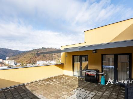 Prodej luxusního bytu o dispozici 2+kk se dvěma terasami a parkováním