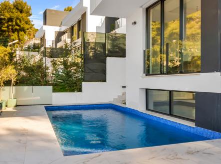 V jedné z nejžádanějších rezidenčních čtvrtí východní Málagy se nachází tato výjimečná samostatně stojící vila, která kombinuje moderní architekturu, nadčasový design a vysoký standard bydlení. Nemovitost je součástí komorního developerského projektu v lokalitě Pinares de San Antón a je připravena jak k okamžitému nastěhování, tak jako atraktivní investiční příležitost. Vila je rozložena do čtyř podlaží a nabízí velkorysou užitnou plochu 460,75 m². Promyšlená dispozice vytváří vzdušné a světlé obytné prostory, které plynule propojují interiér s exteriérem. Celkem pět ložnic a čtyři koupelny poskytují dostatek soukromí i komfortu pro rodinné bydlení, zatímco prostorné společenské zóny jsou ideálním místem pro setkávání s rodinou a přáteli. Součástí domu je také garáž, dále herna vhodná pro rodinnou zábavu či relaxační prostor a soukromá posilovna, která umožňuje aktivní životní styl přímo v pohodlí domova. Tyto doplňkové prostory výrazně zvyšují komfort bydlení i investiční hodnotu nemovitosti. Exteriér vily nabízí soukromý bazén o ploše 27 m², několik teras s celkovou výměrou 123,05 m² a střešní solárium, které poskytuje ideální prostor pro odpočinek, posezení nebo vychutnání středomořské atmosféry. Parkování je zajištěno v garáži i na pozemku o rozloze 424,31 m². Vila je vybavena tepelným čerpadlem a klimatizací, které zajišťují komfortní vnitřní klima po celý rok a energeticky úsporný provoz. Díky své koncepci je nemovitost vhodná jak pro vlastní bydlení, tak pro dlouhodobé či krátkodobé pronájmy. Centrum města Málaga je vzdáleno přibližně 10 minut jízdy, pláže cca 10–15 minut a mezinárodní letiště Málaga–Costa del Sol zhruba 20 minut jízdy. Lokalita Pinares de San Antón je vyhledávaná pro své soukromí, klid a exkluzivní vilovou zástavbu, přičemž centrum Málagy, pláže i veškerá občanská vybavenost jsou rychle dostupné. Tato vila je ideální volbou pro klienty, kteří hledají výjimečné bydlení nebo stabilní investici na prestižní adrese Costa del Sol.