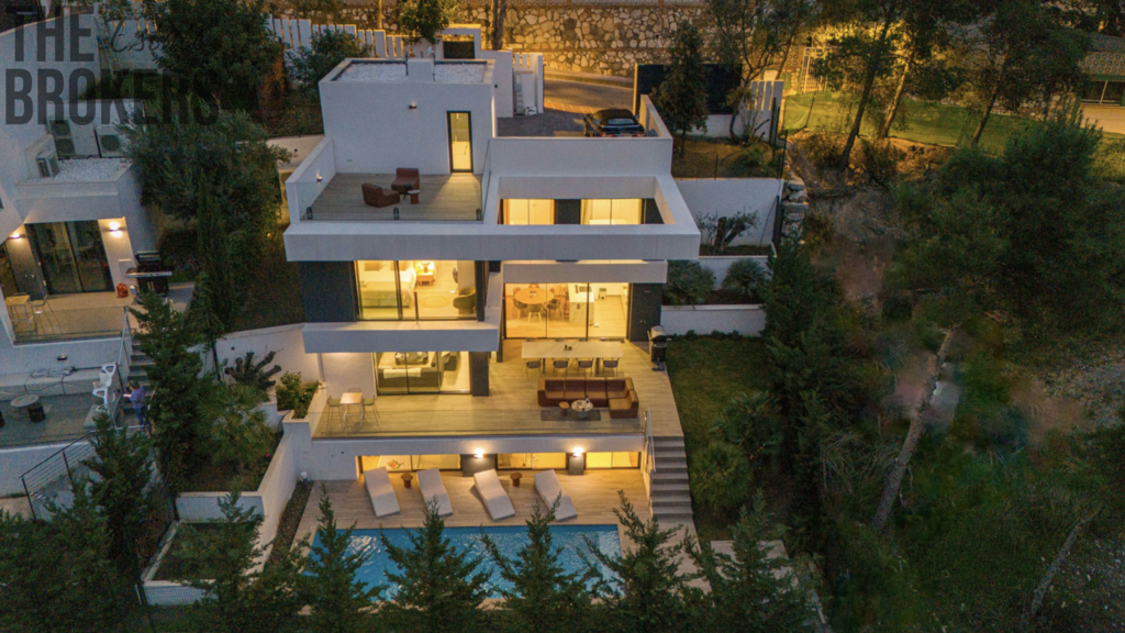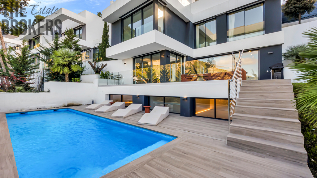 Tato moderní novostavba samostatné vily se nachází v jedné z nejvyhledávanějších a nejprestižnějších rezidenčních lokalit města Málaga – Pinares de San Antón, která je známá svým klidným prostředím, soukromím a panoramatickými výhledy na okolní krajinu i město. Vila je situována na pozemku o velikosti 409,20 m² a nabízí nadstandardní užitnou podlahovou plochu 517,45 m², rozloženou do čtyř podlaží – garážového podlaží, suterénu, přízemí a prvního patra. Celková zastavěná plocha činí 579,85 m², přičemž jsou započítány také terasy a parkovací prostory. Interiér domu je navržen s důrazem na prostor, světlo a funkčnost. Vila nabízí 5 prostorných ložnic a 4 koupelny, velkorysé obývací prostory, moderní kuchyni s jídelnou a přímé propojení obytné části s venkovními terasami. Hlavní obytné podlaží plynule navazuje na rozsáhlé slunné terasy o celkové ploše 113,60 m², které poskytují ideální prostor pro venkovní posezení, stolování i relaxaci. Součástí exteriéru je soukromý bazén o ploše 27 m², který spolu s terasami vytváří plnohodnotný venkovní obytný prostor využitelný po celý rok. Velkou výhodou nemovitosti je soukromá garáž s užitnou plochou 116,35 m², která umožňuje parkování více vozidel a zároveň nabízí dostatek prostoru pro sklad, sportovní vybavení či technické zázemí. Garáž je s domem propojena vnitřním schodištěm. Lokalita Pinares de San Antón patří mezi nejžádanější rezidenční čtvrti v Málaze. Nabízí kombinaci klidu, zeleně a soukromí s výbornou dostupností všech služeb. Centrum města Málaga je vzdáleno přibližně 10 minut jízdy, pláže cca 10–15 minut a mezinárodní letiště Málaga–Costa del Sol zhruba 20 minut jízdy. Tato vila je ideální volbou jak pro luxusní rodinné bydlení, tak i jako investiční nemovitost v jedné z nejatraktivnějších oblastí jižního Španělska.