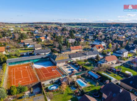 Prodej víceúčelového areálu s velkým investičním potenciálem – Babice u Říčan (2 930 m2) Jedinečná příležitost pro investory, sportovní nadšence i podnikatele v oblasti ubytování a gastronomie! Nabízíme k prodeji rozsáhlý areál o celkové výměře cca 3 000 m2, který spojuje ubytování, restauraci, sportovní zázemí a rodinné bydlení. Areál zahrnuje: Rodinný dům se zahradou – užitná plocha cca 191 m2 Ubytovací objekt – apartmán 1+kk v přízemí, 3 pokoje se sociálním zařízením v patře, celkem cca 129 m2 Restaurace s venkovním posezením, salónkem, apartmánem a dalším ubytováním (3 pokoje, společná místnost, sociální zařízení) – celkem cca 449 m2 Dva antukové tenisové kurty – s odvodňovacími kanálky, zavlažovacím systémem s čerpadly a vybavením pro míčové sporty. Vlastní parkoviště pro hosty i obyvatele Celková podlahová plocha budov: cca 769 m2 Celková plocha pozemku: cca 3 000 m2 Tato investiční p