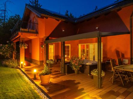 Prodej zařízeného rodinného domu v Babicích u Říčan. Rodinný dům o dispozici 7+kk+7, na pozemku 1 118 m2. Dům má tři podlaží, dvě nadzemní + jedno podzemní a pochozí půdu. Pečlivě upravený pozemek je v jednosměrné ulici s minimálním provozem a přímým přístupem do lesa. Na pozemku máte i díky absenci přímých sousedů dokonalý klid a přírodu opravdu na dosah. Krytý venkovní bazén je se slanou vodou a velmi silným protiproudem, ve kterém se dá plavat. O udržovaný trávník se stará robotická sekačka a automatický závlahový systém s retenční nádrží. Jedním z benefitů této nemovitosti je vlastní vrtaná studna s pitnou vodou, která zajistí dostatek vody pro celou domácnost. Kvalitní tepelné čerpadlo + Fotovoltaika + Bateriové úložiště + Solární teplovodní systém + Dálkově ovládané vytápění, to vše zaručuje efektivní provoz s minimálními náklady na provoz domu. Kombinace podlahového vytápění a radiátorů a nadstandardní zásoba teplé vody. Energetická náročnost budovy B - velmi úsporná. Instalované je zabezpečovací zařízení s kamerovým systémem, nechybí centrální vysavač. Do domu je zavedená pevná internetová linka, ve všech místnostech jsou datové přípojky. Vstup domu je bezklíčový přes kameru, vstupní branku lze otevírat i vzdáleně. 1.NP (3+kk) Do domu vstoupíte přes otevřenou halu s vysokým otevřeným stropem až do horního patra. V přízemí vás čeká velkorysý obývací pokoj s kuchyňským koutem a jídelnou, ideální pro každodenní život i hosty. Dále zde najdete pracovnu, ložnici pro hosty, koupelnu s vanou i sprchovým koutem, samostatnou toaletu a spíž. 2.NP (4 místnosti) Ve druhém nadzemním podlaží se nachází dva prostorné dětské pokoje se společným balkonem, hlavní ložnice s vlastním balkonem, koupelna, samostatná toaleta a velká šatna, kterou lze snadno využít jako další pokoj. Z tohoto podlaží je přístup na pochozí půdu, která se rozprostírá přes celou délku domu. 1.PP Suterén (7 místností) V suterénu, který je tepelně izolovaný, vytápěný a větraný, najdete halu, velkou fitness, prádelnu, security místnost, technickou místnost, domácí dílnu, serverovnu a dva sklady. Místnosti v suterénu mají díky anglickým dvorkům s okny přívod čerstvého vzduchu a denního světla. Ze suterénu vedou dva samostatné východy, a to do interiéru a druhý zabezpečený, vede přímo na zahradu. Na podlaze suterénu je položena dlažba. Tento dům nabízí více než jen bydlení. Je to kombinace vysokého standardu, moderních technologií, nezávislosti a prostředí, ve kterém budete chtít zestárnout. Unikátní nabídka pro náročného kupce, který hledá výjimečné místo k životu v přírodě, tichu a zároveň v blízkosti Prahy. Babice u Říčan jsou klidná a vyhledávaná lokalita, vzdálená jen 10 minut od Říčan a východní hranice Prahy. Nabízí veškeré občanské vybavení. Další významnou předností této lokality je prestižní škola a gymnázium OPEN GATE, které se nachází přímo v Babicích a nabízí další benefity. Pro domluvení prohlídky kontaktujte makléře.