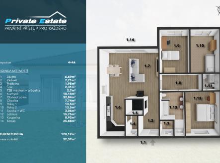 Exkluzivně nabízím k prodeji moderní bungalov 4+kk o užitné ploše 120 m² s terasou 26 m2 na prostorném pozemku 843 m² v obci Babice u Říčan. Tato nemovitost představuje ideální spojení komfortního bydlení, soukromí a moderních technologií. Bungalov je skvělou volbou pro rodinu, která hledá klidné a kvalitní bydlení v žádané lokalitě s výbornou dostupností do Prahy. Hlavní přednosti domu: Obývací pokoj s krbem a kuchyní: Světlý a otevřený prostor s krbovými kamny, které díky rozvodu tepla vytápí celý dům. Moderní kuchyňská linka je součástí hlavní obytné části s přímým vstupem na zahradu. Dvě koupelny: Hlavní ložnice disponuje vlastní koupelnou, která zajišťuje maximální komfort a soukromí. Druhá koupelna je přístupná z chodby a slouží ostatním členům domácnosti i návštěvám. Podlahové vytápění: Teplovodní podlahové vytápění v celém domě poskytuje rovnoměrné a příjemné teplo. Moderní vinylové podlahy: Odolné, elegantní a snadno udržovatelné podlahy, které podtrhují moderní charakter interiéru. Parkování na pozemku: Vlastní parkovací stání pro více vozidel přímo u domu. Sudová sauna ze smrkového dřeva: Na prostorné zahradě se nachází designová sudová sauna ze smrkového dřeva, ideální pro relaxaci v soukromí a blízkosti přírody. Chytrá domácnost Somfy: Dům je vybaven inteligentním systémem Somfy, který umožňuje pohodlné ovládání venkovních žaluzií, vzduchotechniky, vytápění a vjezdové brány – i na dálku. PENB štítek se připravuje, proto se uvádí energetická třída G Pro více informací a sjednání prohlídky mě neváhejte kontaktovat.