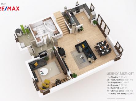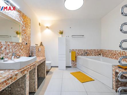 Navenek nenápadný, uvnitř fantasticky prostorný rodinný dům o dispozici 6+1 se nachází v lukrativní obci Babice. Tato obec je vyhledávanou lokalitou díky své klidné atmosféře, výborné dostupnosti do centra Říčan i do Prahy, ale především díky prestižní škole OPEN GATE. Kampus školy byl vybudován v roce 2005 manželi Kellnerovými a v Čechách tato škola patří mezi špičku. Dům v poslední době prošel kompletní rekonstrukcí a je velmi nadstandardně vybaven. Je řešen prakticky a moderně. Vše je promyšleno do posledního detailu a na materiálech se zde rozhodně nešetřilo. V přízemí domu je prostorný obývací pokoj s francouzskými okny do zahrady. V obývacím pokoji je také luxusní lustr od firmy Preciosa a klimatizační jednotka. V obývacím pokoji jsou krbová kamna s obkladem z pravé břidlice. Moderní samostatná kuchyň je vybavena značkovými spotřebiči MIELE. V přízemí se dále nachází pokoj pro hosty, vstupní hala, technická místnost, koupelna a komora šikovně umístěná pod schody do patra domu. Prostorná koupelna je vybavena luxusní vanou značky Villeroy & Boch, bateriemi Hansgrohe a Grohe. Podlaha koupelny je vytápěná. Moderně řešené podkroví domu je velmi dobře prosvětleno a nabízí moderní a vzdušné prostory pro početnou rodinu. V patře domu jsou další 4 pokoje. Hlavní ložnice disponuje prostornou šatnou. Pro lepší propustnost světla je v horním patře instalována posuvná skleněná stěna. Dále je zde koupelna se sprchovým koutem a hydromasážní vanou. Samostatná, velmi prostorná toaleta s elektrickým bidetovým sedátkem USPA LUX s dálkovým ovládáním. Podlahy jsou dřevěné v kombinaci s luxusními koberci. Osvětlení značky Top Light umožňuje regulaci svítivosti a barvy světla. Dům je zabezpečen alarmem Jablotron. Na zahradě je automatický zavlažovací systém Rain Bird a venkovní osvětlení. Zahrada poskytuje hned několik míst k relaxaci. Prostorný designový zahradní domek s posuvnými dveřmi o velikosti 6,5 x 1,5 metru je umístěn z boku u domu. Před domem jsou dvě parkovací stání a další dvě parkovací stání jsou na pozemku, z nichž jedno je kryté. Vjezd na pozemek zajišťuje automatická brána. Okolí domu je vydlážděno zámkovou dlažbou od značky Best. Dům je postavený z cihel porotherm a zateplen 15 cm polystyrenem, na kterém je aplikována silikonová fasádní omítka o hrubosti 1,5 mm v bílé barvě. Střecha je z betonových tašek černé barvy a je tepelně izolovaná 28 cm vaty + 25 mm OSB deskami. Okna jsou sedmikomorová dvojskla s dekorem dřeva. Interiér je vymalován prémiovou barvou Dulux Vinyl Matt a doplněn dekorativními omítkami od firem San Marco a Adler v černé barvě, v kombinaci s květinovým živým obrazem. Vytápění zajišťuje plynový kotel se zásobníkem na teplou vodu o objemu 120 litrů. Topení je řešeno deskovými radiátory značky Korado, v koupelnách jsou prémiové žebříky značky Kermi a podlahové vytápění.