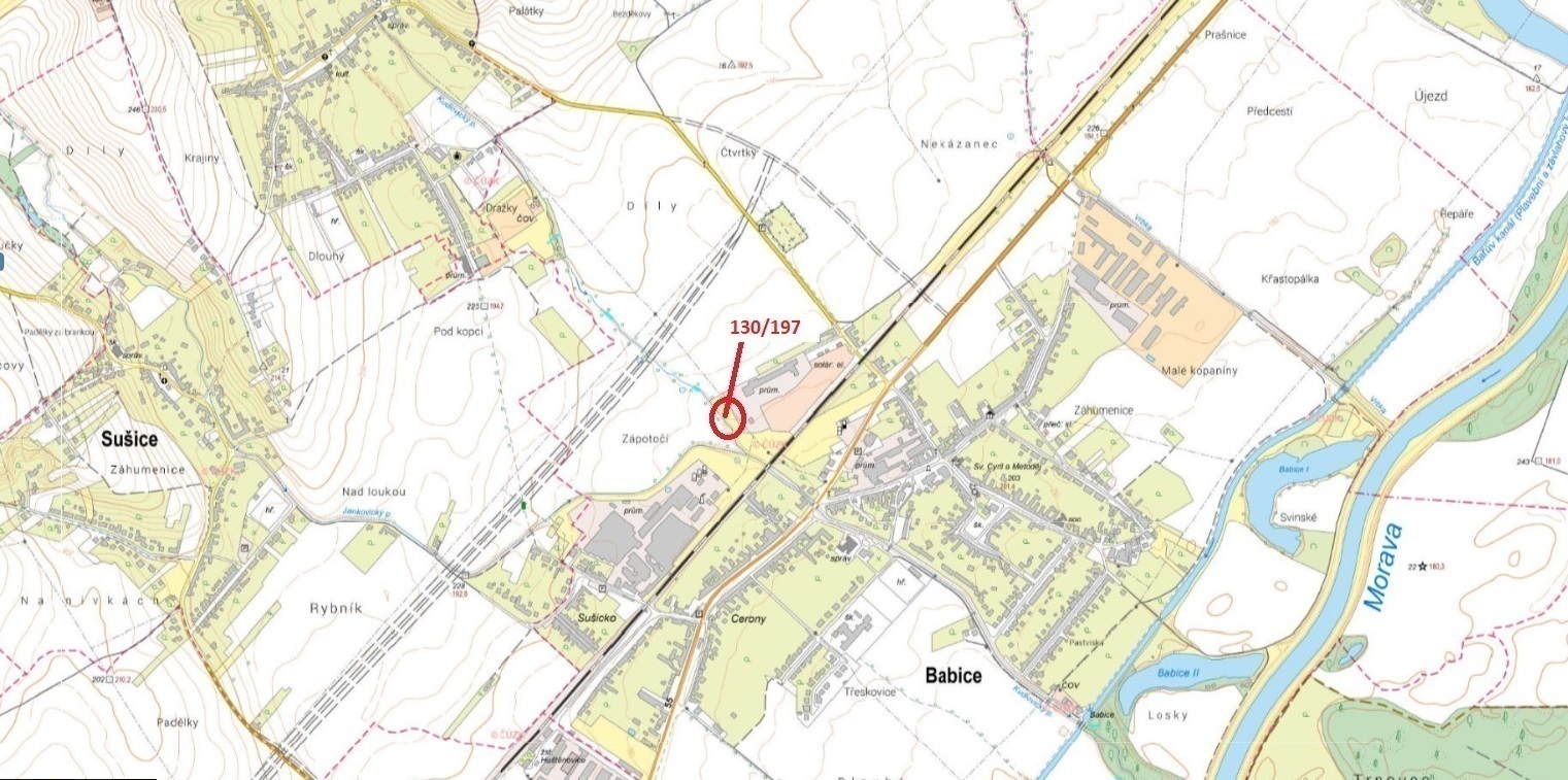 Vodní plocha o výměře 76 m2, parcelní číslo 130/197, podíl 1/1, katastrální území Babice u Uherského Hradiště, obec Babice, obec s rozšířenou působností Uherské Hradiště, okres Uherské Hradiště, Zlínský kraj.