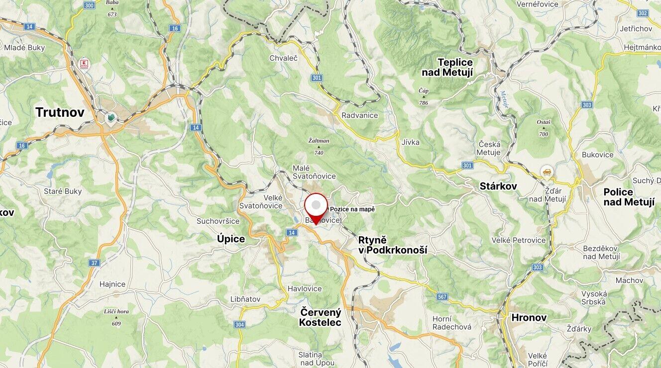 Nabízíme k prodeji pozemek o výměře 4 773 m2 k.ú. Batňovice. Pozemek, který se nachází severozápadně od Batňovic v blízkosti obce Kvíčala. V katastru nemovitostí je veden jako trvalý travní porost. Batňovice jsou malebná obec v okrese Trutnov, kraj Královéhradecký. Nachází se pod Jestřábími horami na rozhraní Rtyňské brázdy a Trutnovské pahorkatiny, obklopená přírodou a protkána potoky Rtyňkou a Zaječím potokem. Název katastrálního území je Batňovice. V případě zájmu nás neváhejte kontaktovat.