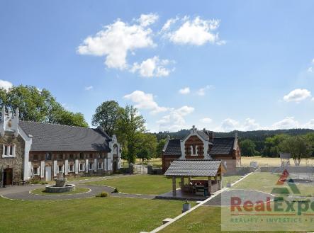 Exkluzivně nabízíme k prodeji zajímavý soubor 5 nemovitostí s bohatou minulostí – rozsáhlý areál s kořeny sahajícími ke šlechtickému rodu Schwarzenberků. Nemovitosti se nachází na okraji malebné obce Čichtice u Bavorova a rozkládají se na pozemcích o celkové výměře 43 413 m². Areál je rozdělen do obytné části (tři domy) a komerční části (dva objekty – garáže, dílny, sklady). V posledních letech prošly všechny budovy rozsáhlou a nákladnou rekonstrukcí. Byla vyměněna střecha, krovy, rozvody elektřiny, vody i topení. Nová jsou dřevěná okna, fasáda, interiéry i terénní úpravy – vše s důrazem na zachování historického charakteru. Hlavní patrová budova (62 × 15 m, zastavěná plocha 930 m², užitná plocha cca 1 480 m²) nabízí v přízemí reprezentativní společenské prostory: relaxační místnost (177 m²) s bazénem a saunou, společenský sál s barem a bowlingem (278 m²), keramickou dílnu a vstupní halu. V patře jsou čtyři kompletně vybavené apartmány (3× 3+kk, 1× 4+kk) – každý s vlastní koupelnou, WC, kuchyní a obývacím pokojem. Veškeré vybavení je součástí prodeje. Vedlejší patrová stavba (30 × 10 m, užitná plocha cca 500 m2) má v přízemí technické zázemí, dílny, garáže a sklad. V patře jsou tři apartmány (3+kk, 2+kk, Atelier). Hostinský / správcovský dům (16 × 8 m, užitná plocha cca 192 m²) nabízí byt 1+1, 2 kotelny na plyn a na pevná paliva, které zajišťují vytápění všech obytných objektů. V patře jsou tři obytné místnosti, částečně podsklepeno. Komerční část tvoří 2 haly – první (45 × 16 m, 720 m²) rozdělená na dvě sekce 2 x 360 m2, využívaná jako garáž a servisní prostor pro sbírku historických vozidel (cca 40 aut), a druhá (35 × 11 m, 385 m²) s dílnou, lakovnou s kvalitní technologií odvětrání a truhlárnou. Využití a potenciál: Areál nabízí široké spektrum možností – ubytovací resort, svatební či rekreační areál, jezdecké centrum, firemní sídlo, řemeslný areál nebo soukromé venkovské sídlo. Citlivě zrekonstruované objekty, rozsáhlé pozemky a absolutní soukromí vytvářejí mimořádné prostředí pro trvalé i rekreační bydlení, podnikání či investici. Technické informace: Areál má vlastní trafostanici, dostatečnou plynovou přípojku a samostatné vjezdy do obytné i komerční části. Zpevněné plochy umožňují vjezd i nákladním vozidlům. Součástí prodeje je rozlehlá oplocená louka o výměře 28 955 m², přímo navazující na areál. Voda je zajištěna ze dvou vydatných studní s pitnou vodou (rozbor k dispozici), kanalizace je řešena velkokapacitními jímkami. Lokalita: Obec Čichtice leží v malebné jihočeské krajině nedaleko města Bavorov. Lokalita je ceněna pro klid, čistou přírodu a přitom výbornou dopravní dostupnost – Strakonice 20 min, České Budějovice cca 40 min. Malebné prostředí, historická hodnota, soukromí i technická připravenost činí z tohoto areálu zcela výjimečnou nabídku na českém trhu.