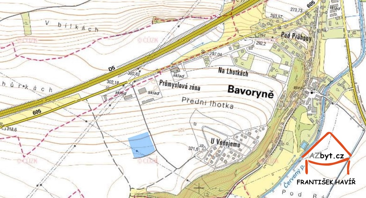 Bez provize. Exkluzivně nabízím k prodeji stavební pozemek u dálnice D5 na stavbu haly o rozměrech 44 m x 47 m a související pozemek na skladování a parkování, celkem 9 892 m2, v průmyslové zóně obce Bavoryně. Na stavbu haly a doplňkových staveb je vydáno územní rozhodnutí. Pozemek parc. č. 284/145 v katastrálním území Bavoryně je dle územního plánu situován v ploše „VK - Výroba a skladování - skladování", územně plánovací informace k dispozici. Přístup z veřejné komunikace, sousedí se silnicí 1. tř. č. 605 a dálnicí D5.