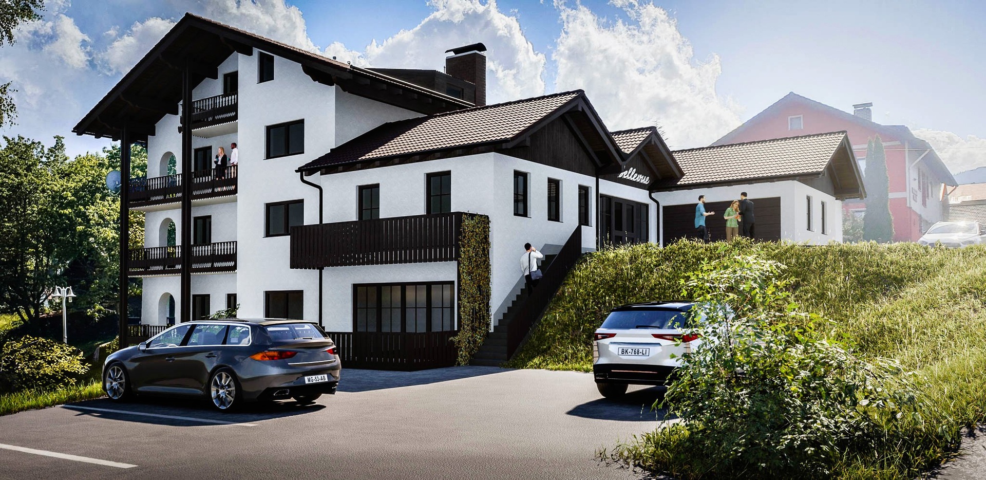 Nabízíme Vám k prodeji bytovou jednotku v apartmánovém domě BELEVUE v obci Bayerisch Eisenstein v Německu. 2+kk 58,1 m² + terasa14,5 m2 + parkovací stání, sklepní kóje - dle vlastního výběru - v kompletně zrekonstruovaném domě se nachází celkem 13 apartmánů pro druhé rezidenční bydlení s možností pouze dlouhodobého pronájmu - bez možnosti denního pronájmu pro komfortní a klidné užití nemovitosti všemi vlastníky - absolutně bezkonkurenční poloha pod lyžařským areálem Velký Javor - Český správce SVJ sídlící přímo v objektu - kompletní rekonstrukce topení a elektřiny a oken - zcela nová kotelna kotel Viessmann, včetně správy a servisu českou firmou - vyúčtování tepla českou firmou českým správcem - velmi nízké provozní náklady : fond oprav, záloha vodné, záloha elektřina, záloha plyn – celkem ve výši 2 eura na 1m2 , z toho 0,5 eura za mě fond oprav a 1,5 eura za m2 zálohy energií - styl shell and core pro dokončení interiéru – podlahy, koupelna včetně sanity, kuchyně k dokončení dle vlastního designu a standardu, pro návrhy a realizace dokončení Vám rádi doporučíme profesionály v oboru se kterými na tomto projektu spolupracujeme - společný prostor lyžárny - bude dovybaven zařízením - společný prostor kolárny - sportovní využití lyžování, běžkařských tras, trail tras , turistických tras a cyklostezek - celoroční využití, kouzelná okolní příroda pro procházky a celkovou relaxaci - 15 min dojezdová vzdálenost golfová hřiště - skvělá gastronomie v místě , obchody a další služby - v příštím období vybudování přírodního biotopu na místě po bývalém plaveckém areálu/bazénu - možnost majetkového pojištění českou společností - možnost financování hypotečním úvěrem se zástavou další nemovitosti v ČR - velmi příjemná cenová relace pod úrovní cen nemovitostí na české straně - kompletní info k daním a poplatkům spojených s koupí této nemovitosti v RK