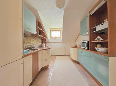 Nabízíme k prodeji krásný slunný byt 3+1, 102 m2 + balkon 8 m2. Byt je umístěný ve 2. patře (podkroví) domu v Bavorské Rudě, ul. Hafenbradlallee 14, okres Regen, Dolní Bavorsko. K bytu patří garáž a parkovací místo + část dřevěného domku u domu, kde je možnost ukládání dřeva, příp. lyží atd.. Bavorská ruda se nachází pouhé 2 km od česko-německých hranic, poblíž Železné Rudy. Dispozice bytu - vstupní hala s jídelním koutem, spíž, kupelna s vanou a sprchovým koutem spojená s WC, 2x ložnice, kuchyně a obývací pokoj se vstupem na balkon. Z balkonu je krásný výhled do okolí, na horu Javor. V obývacím pokoji jsou umístěna kachlová kamna. Dům je napojen na všechny sítě. Vytápění a ohřev vody zajišťuje centrální plynová kotelna umístěná ve sklepě domu. Byt je vytápěn radiátory a v koupelně a kuchyni je podlahové topení. Na podlahovém topení je položena dlažba. V obývacím pokoji a ložnicích je plovoucí podlaha. V bytě zůstává vybavení a zařízení, uvedené na fotografiích, včetně pračky a myčky. Vybavení je zahrnuto v ceně. Do bytu se vchází zadním vchodem, který je společný pouze se sousedním bytem, což poskytuje větší soukromí. V obci je základní infastruktura. Nádherná lokalita vhodná pro zimní sporty, především lyžování a v létě cyklistika. Průkaz energetické náročnosti nebyl dodán, proto je vyznačeno G, což však neodpovídá skutečnosti. Byt je možné využívat i k trvalému bydlení.