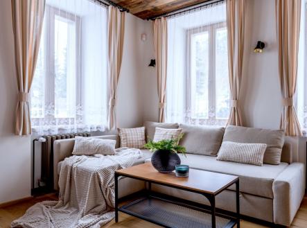 Nabízíme k dlouhodobému pronájmu apartmán o velikosti 31,4 m² a dispozici 1+kk. Apartmán v nově zrekonstruovaném objektu je plně vybaven vším, co potřebujete k příjemnému trávení volných dní na horách. Nájemce apartmánu může využívat mnoha služeb a prostor společných částí horské chaty, jako například prostornou jídelnu s krbem, knihovnu, sušárnu na lyžařské boty, lyžárnu, kolárnu a také zastřešené venkovní posezení s krbem, dětské hřiště apod. Chata se nachází na kraji obce Bedřichov, skibusem se dostanete na stadion za 4 minuty, zastávka je přímo u chaty. V bezprostřední blízkosti chaty je malý lyžařský areál. Parkování u chaty bez problémů i v zimě.