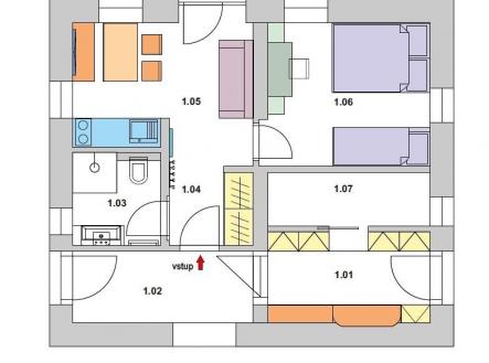 Nabízíme k dlouhodobému pronájmu apartmán o velikosti 40 m² a dispozici 2+kk. Apartmán v nově zrekonstruovaném objektu je plně vybaven vším, co potřebujete k příjemnému trávení volných dní na horách. Nájemce apartmánu může využívat mnoha služeb a prostor společných částí horské chaty, jako například prostornou jídelnu s krbem, knihovnu, sušárnu na lyžařské boty, lyžárnu, kolárnu a také zastřešené venkovní posezení s krbem, dětské hřiště apod. Chata se nachází na kraji obce Bedřichov, skibusem se dostanete na stadion za 4 minuty, zastávka je přímo u chaty. V bezprostřední blízkosti chaty je malý lyžařský areál. Parkování u chaty bez problémů i v zimě.