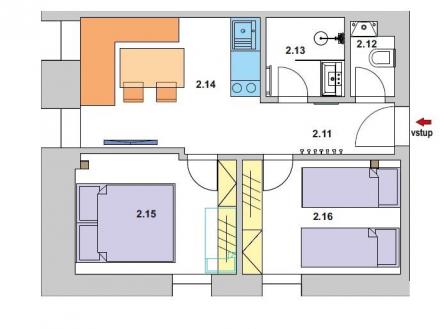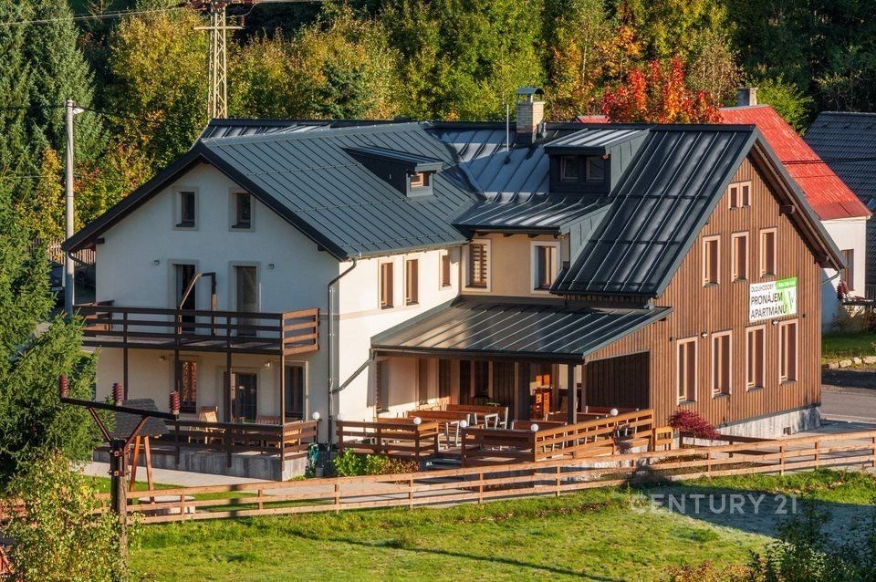 Nabízíme k dlouhodobému pronájmu apartmán o velikosti 36 m² a dispozici 3+kk. Apartmán v nově zrekonstruovaném objektu je plně vybaven vším, co potřebujete k příjemnému trávení volných dní na horách. Nájemce apartmánu může využívat mnoha služeb a prostor společných částí horské chaty, jako například prostornou jídelnu s krbem, knihovnu, sušárnu na lyžařské boty, lyžárnu, kolárnu a také zastřešené venkovní posezení s krbem, dětské hřiště apod. Chata se nachází na kraji obce Bedřichov, skibusem se dostanete na stadion za 4 minuty, zastávka je přímo u chaty. V bezprostřední blízkosti chaty je malý lyžařský areál. Parkování u chaty bez problémů i v zimě.