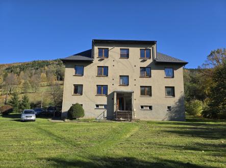 Nabízíme k prodeji prostorný a velmi zajímavě řešený byt 3+1 o celkové výměře 76 m², který se nachází ve 2. nadzemním podlaží cihlového bytového domu v obci Domašov. Byt zaujme především nádherným výhledem na okolní hory, velkým množstvím úložného prostoru a útulnou atmosférou. Dispozice bytu • vstupní chodba s přístupem do všech místností • všechny pokoje s nádherným a ničím nerušeným výhledem na hory • koupelna s vanou • samostatné WC • dětský pokoj • obývací pokoj s krbovými kamny • ložnice s velkou skříní • Vytápění a ohřev vody plynovým kotlem umístěným přímo v bytě • V obývacím pokoji dubová podlaha, v ložnici lino • Stěny v ložnice od půdního prostoru zatepleny polystyrénem Další prostory • sklepní koje • společné prostory (kolárna) • chodba před bytem vhodná k umístění botníku či věšáku • společná půda, která je využívaná pouze tímto bytem díky přímému přístupu, možnost dalšího rozšíření, díky podkroví. Měsíční náklady • společenství vlastníků (voda-650,-Kč , správa, společné prostory, fond oprav1000,-Kč) • cca 5300 Kč energie (plyn 3500,-Kč + elektřina 1800,-Kč) • internet 399,-Kč) • Vytápění a ohřev vody plynovým kotlem umístěným přímo v bytě • V obývacím pokoji dubová podlaha, v ložnici lino • Stěny v ložnice od půdního prostoru zatepleny polystyrénem. Další výhody • možnost odkoupit zahradu s chatkou přímo u domu • parkování před domem Byt je vhodný jak pro trvalé bydlení, tak i jako rekreační nemovitost v Jeseníkách. Díky krbovým kamnům a možnosti využití podkroví působí velmi útulně a nabízí příjemné bydlení s výhledem, který se jen tak nevidí. V obci-škola, školka, restaurace, pošta. Nedaleko lyžařský Ski areál Filipovice, možnost výšlap na Praděd, Karlova Studánka. Energetické náročnosti budovy není doložen, proto uvádíme – G
