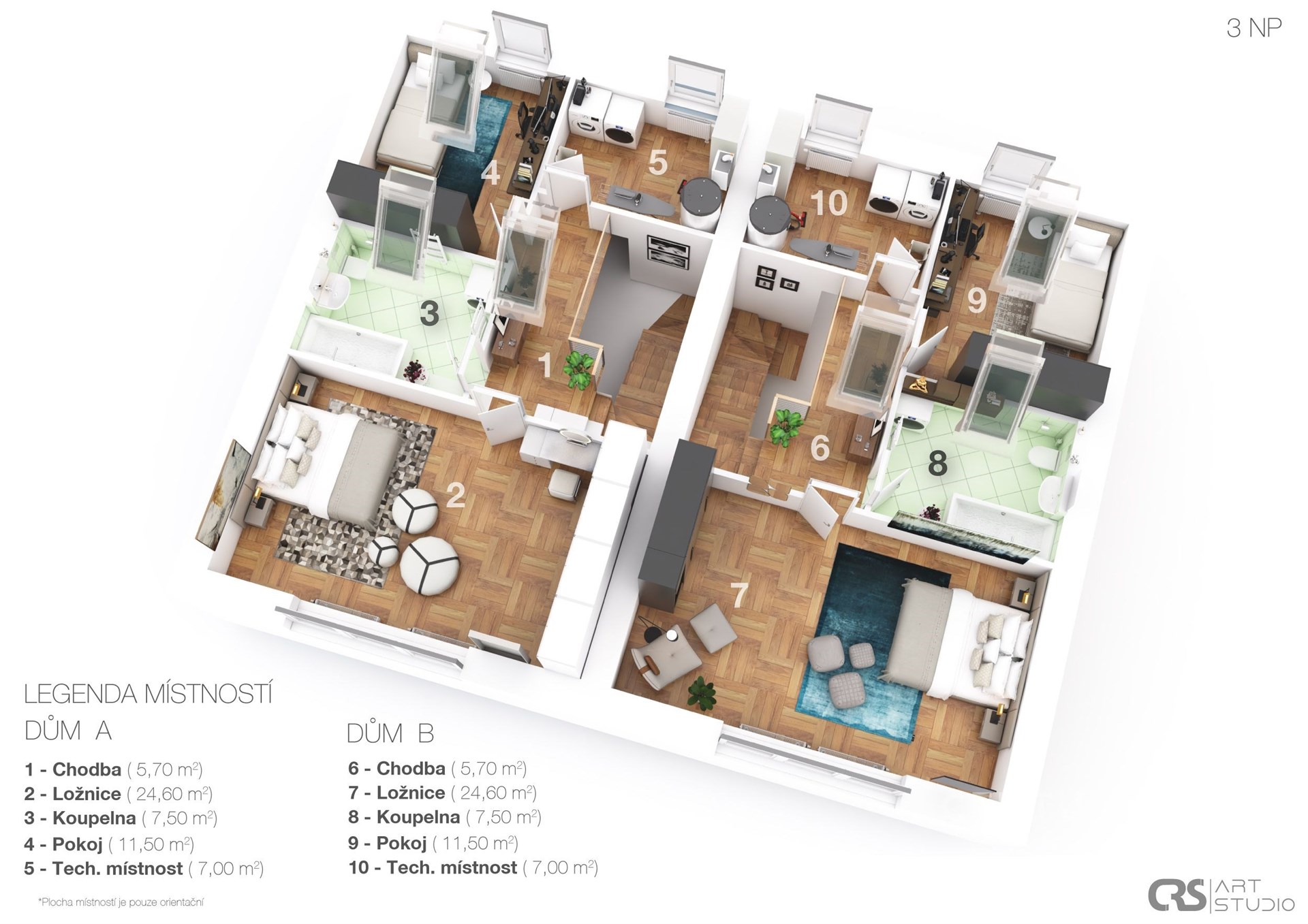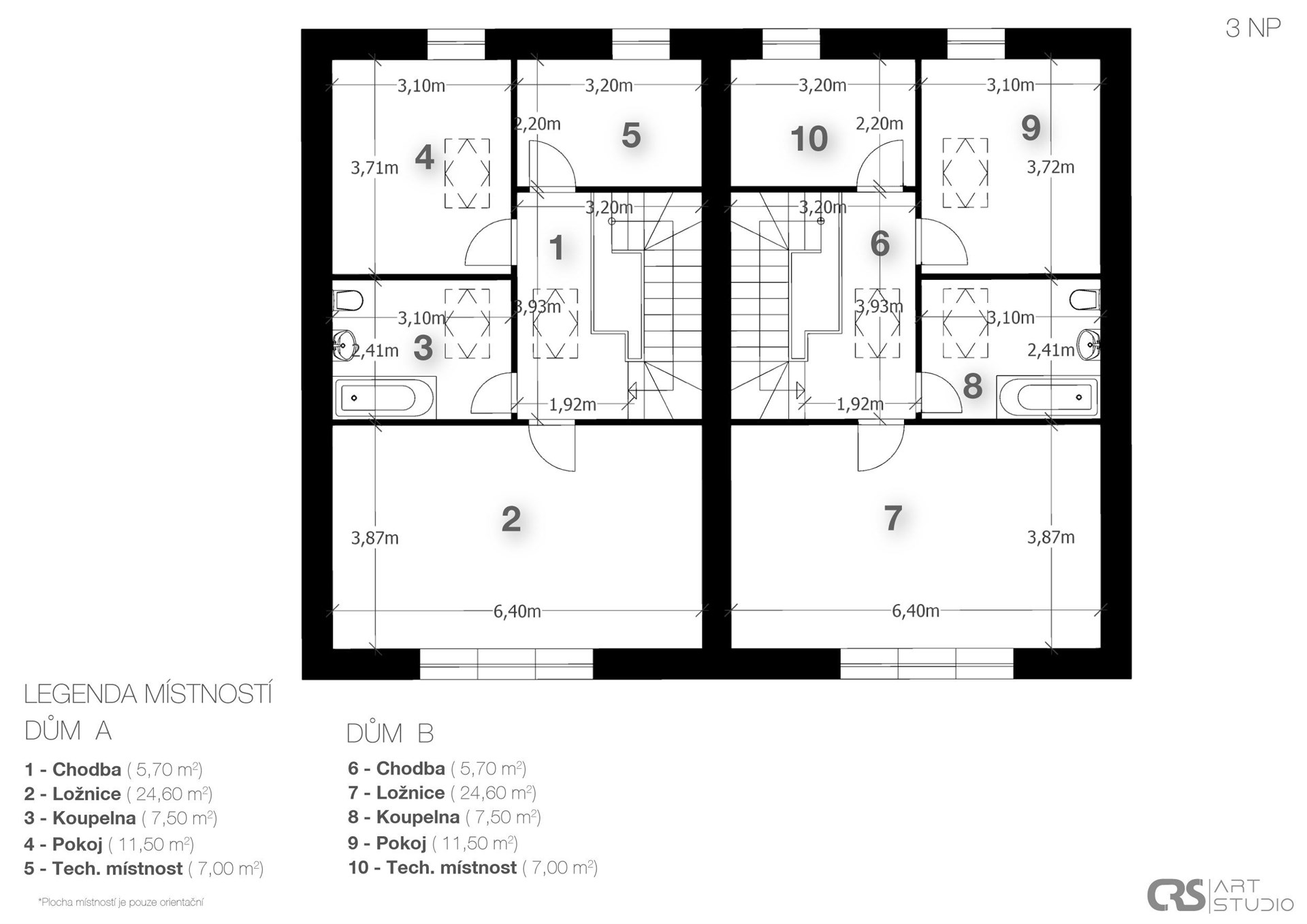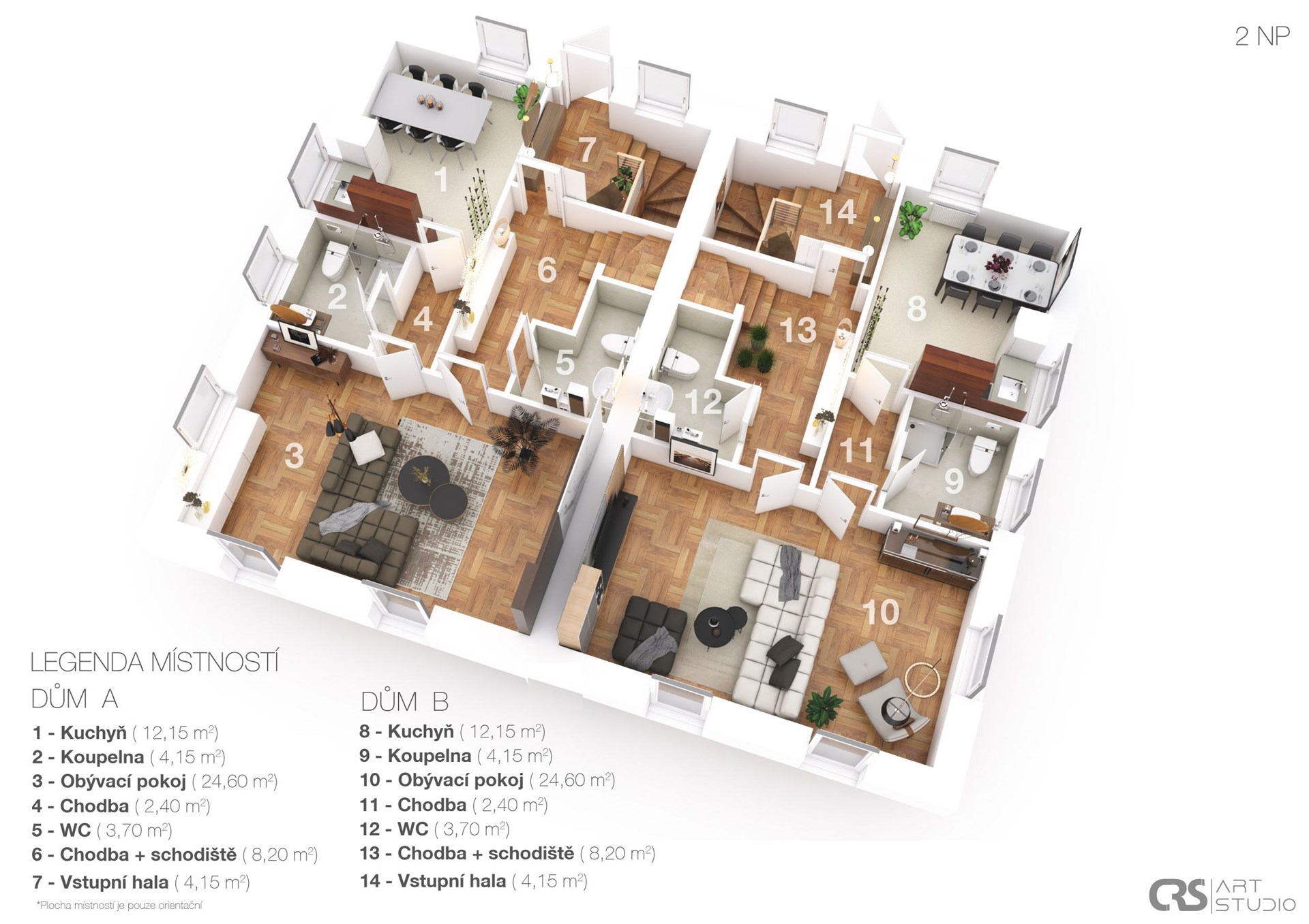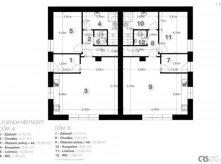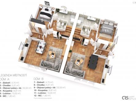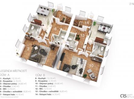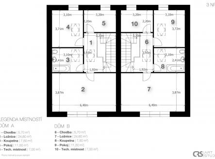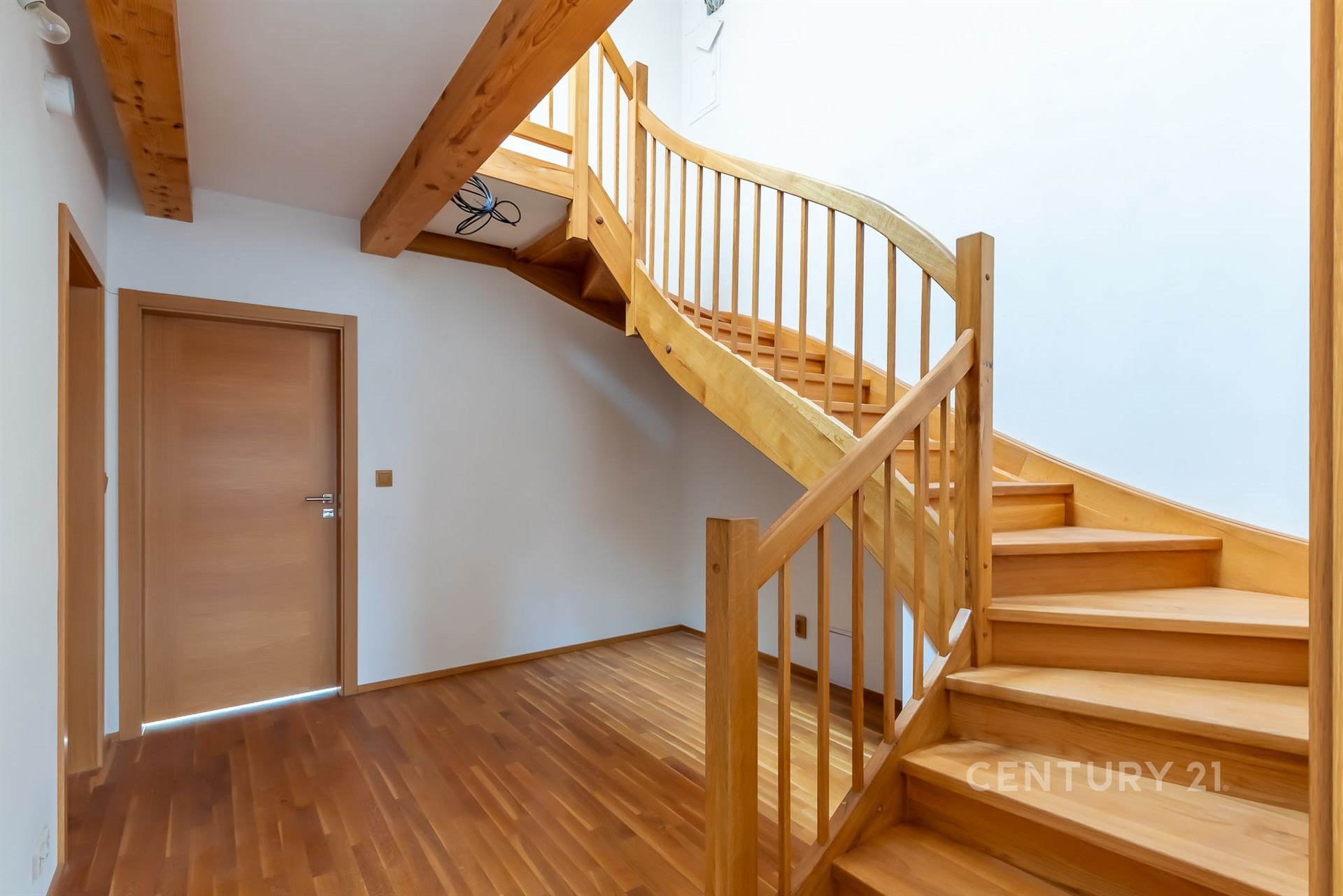 Rodinný dům se nachází v klidné rezidenční části Nad Vinicemi v Benátkách nad Jizerou. Nabízí otevřený a ničím nerušený výhled do okolní krajiny a pocit prostoru, klidu a soukromí. Moderní rodinný dům byl kolaudován v roce 2014 a je vhodný jak pro více generační bydlení, tak jako investiční příležitost s možností pronájmu jednotlivých bytových jednotek. Dispoziční řešení: Nemovitost má dvě samostatné poloviny, přičemž každá z nich obsahuje dvě bytové jednotky s dispozicemi 2+kk a 3+1. Celkem tak dům nabízí čtyři samostatné bytové jednotky, které lze využívat odděleně nebo je vzájemně propojit dle potřeb nového majitele. Dům má tři nadzemní podlaží. Základní údaje: • celková užitná plocha: 393 m² • obytná plocha: 352,8 m² • sklepní prostory: 40 m² • pozemek: 881 m² • zahrada: 716 m² • parkování: 6 parkovacích míst Interiér: Interiér domu působí světle, vzdušně a nadčasově. Prostor je charakteristický dřevěnými podlahami, přiznanými dřevěnými trámy a dostatkem denního světla, které vytvářejí příjemnou a klidnou atmosféru. Technické zázemí: Dům je napojen na veřejný vodovod, elektřinu a plyn. Vytápění je řešeno plynovým kotlem, který taktéž zabezpečuje ohřev teplé vody. V bytech 2+kk jsou navíc krbové vložky. Součástí domu jsou sklepní prostory, které poskytují dostatek místa. Pozemek a okolí: Pozemek o výměře 881 m² nabízí dostatek prostoru pro vytvoření zahrady a venkovního zázemí dle vlastních představ. Vyšší poloha domu zajišťuje jak výhled, tak i pocit soukromí v rámci rezidenční zástavby. Lokalita: Benátky nad Jizerou poskytují kompletní občanskou vybavenost – školy, školky, obchody, restaurace i zdravotnická zařízení. Lokalita má dobrou dopravní dostupnost a zároveň si zachovává klidný rezidenční charakter. Více informací vám poskytne realitní makléř, který vás zároveň rád osobně pozve na prohlídku tohoto moderního výjimečného domu.
