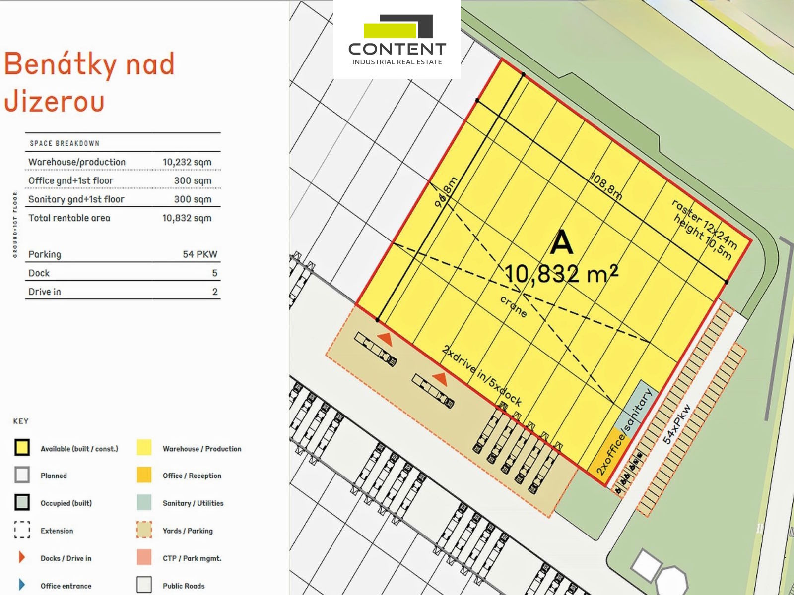 Pronájem skladu, výrobních prostor 10 232 m² Benátky nad Jizerou. V zastoupení majitele a bez provize nabízíme novostavbu kvalitních průmyslových prostor o výměře 10232 m², umístěných v průmyslovém areálu s ostrahou v blízkosti dálnice D10 EXIT 27 s velmi dobrou dostupností do Mladé Boleslavi (Škoda Auto). - velikost kanceláří a sociálního zázemí dle specifikací klienta, - k dispozici (ve výstavbě) do 12 měsíců od podepsání nájemní smlouvy, - vhodné jako skladové nebo výrobní prostory, - přímé vjezdy (Drive-In), - hydraulické rampy, - bezprašná betonová podlaha, nosnost minimálně 7 t/m², - světlá výška 10 m, - vytápění plynem, ostraha areálu 24/7, zabezpečovací systém, - 2500 m² - 37249 m² halové plochy k pronájmu. Cena dle dalších podmínek nájemní smlouvy. Fotografie jsou pouze ilustrativní. Pro více informací nás kontaktujte, rádi zodpovíme Vaše dotazy.