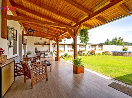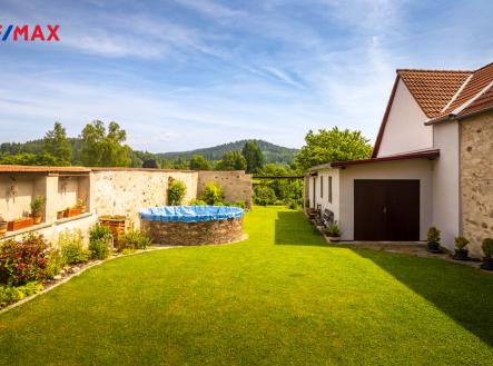 Nabízíme ke koupi kompletně zrekonstruovanou nemovitost situovanou v klidné lokalitě podhůří Novohradských hor, v místě s dobrou dopravní dostupností, vzdáleném 11 km od Kaplice (a dálnice D3), 15 km od Nových Hradů a 22 km od hraničního přechodu s Rakouskem (Dolní Dvořiště). Díky své dispozici a lokalitě nabízí tato nemovitost několik variant využití: trvalé bydlení pro 1 - 2 generace, rekreační nemovitost, kombinaci výše uvedeného využití, komerční prostory - např. cyklo - penzion (se zázemím pro majitele) ve vyhledávané lokalitě Novohradských hor, aj. Při celkové rekonstrukci domu a budování zahrady byl kladen hlavní důraz na kvalitu, detail a pečlivost provedení. Nemovitost je díky tomu připravena k okamžitému užívání bez nároku na další vložené investice. Na jižně orientovaném pozemku s celkovou výměrou 1.039 m2 se nachází vlastní stavba dvoupodlažního rodinného domu s přilehlou krytou terasou, další samostatná stavba (dílna, sklad, dřevník ) a navazující terasová zahrada s užitkovou a okrasnou částí. Z průjezdu domu (spojujícího zahradu s hlavním vjezdem do objektu a na pozemek), který může sloužit i jako garáž pro několik automobilů, je vstup do chodby a dále do obou samostatných bytových jednotek. V přízemí se nachází byt s dispozicí 2+1, v 1. patře je byt 3+kk. Prostorná půda nabízí možnost pro vybudování dalšího bytu (vše stavebně technicky připraveno, včetně rozvodů). Byt 2+1 sestává ze vstupní chodby, kuchyně s možností přímého vstupu na terasu, velkého obývacího pokoje, dalšího pokoje a koupelny (sprchový kout) s WC. Byt 3+kk disponuje vstupní chodbou (hala), světlého obývacího pokoje s navazující jídelní částí a kuchyňským koutem (plně vybaven spotřebiči), dalších dvou samostatných pokojů a koupelny (vana, sprchový kout) s WC. Prostorná krytá terasa nabízí dostatek prostoru pro klidné posezení a relaxaci s dostatkem soukromí a výhledem nejen do zahrady. Díky použitým materiálům a technologiím splňuje objekt z hlediska energetické náročnosti třídu B – velmi úsporný. Vytápění domu je zajištěno ústředním a podlahovým topením, jako zdroj slouží kotel na dřevo v kombinaci s elektrokotlem, zásobníky topné vody a boilery. Pro popis vlastní rekonstrukce je nejjednodušší napsat, že bylo zrekonstruováno úplně vše, detaily probereme při vlastní prohlídce domu, případně telefonicky. Objekt je napojen na veřejný rozvod elektřiny, vody a kanalizace. Oba samostatné byty mají vlastní měření. Zahrada byla při rekonstrukci domu také nově zbudována, v horní části je využívána jako částečně užitková pro pěstování, spodní část zahrady s jezírkem slouží jako okrasná. Kompletně zrekonstruovaná nemovitost s 2 samostatnými byty, velkou krytou terasou a prostornou zahradou, vše v lokalitě na rozhraní Novohradských a Slepičích hor, připravená k okamžitému trvalému či rekreačnímu bydlení – to jsou hlavní znaky této nabídky. Pro více informací, zaslání půdorysů jednotlivých podlaží, dalších fotografií, atd. , mne prosím kontaktujte na níže uvedených kontaktech.