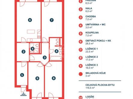 REZERVOVÁNO Exkluzivní nabídka prodeje bytu o dispozici 4+kk s lodžií a balkonem, ul. Tyršova, Benešov. Byt je umístěn ve 3. NP bytového domu s výtahem z roku 2012 nacházejícím se téměř přímo v centru města. Byt o celkové výměře 136,2 m2 (vnitřní plocha 113,5 m2, balkon 7,2 m2, lodžie 12,5 m2) je výjimečně dobře dispozičně řešen a sestává ze vstupní chodby, obývacího pokoje s kuchyňským koutem, 3 ložnic, koupelny se sprchovým koutem a WC, chodby a koupelny s vanou a s WC. Z obývacího pokoje a ložnice je možný vstup na jižně orientovanou lodžii, ze dvou dalších ložnic pak je vstup na severně orientovaný balkon. V celém bytě je položena plovoucí podlaha, v předsíni a v koupelnách je dlažba. Vytápění zajišťuje centrální plynová kotelna v domě. Měsíční poplatky za byt jsou 3 995,- Kč + zálohy na elektřinu. Dům je vybaven výtahem. V suterénu domu jsou garáže vybavené kamerovým systémem, kde je možnost pronajmout si garážové stání. Byt je vybaven kuchyňskou linkou s vestavěnými spotřebiči. Bytový dům se nachází v centru okresního města Benešov. V místě je kompletní občanská vybavenost dostupná autem, MHD i pěšky. Vedle celé škály služeb a obchodů nabízí lokalita snadno dostupné volnočasové aktivity pro celou rodinu, ordinace lékařů a péči dostupnou v okresní nemocnici, mateřské školky, školy i vyhlášené gymnázium. Hypotéka možná, rádi zařídíme. V případě zájmu nebo jakýchkoliv dotazů mě kontaktujte na níže uvedených kontaktech nebo prostřednictvím poptávkového formuláře.