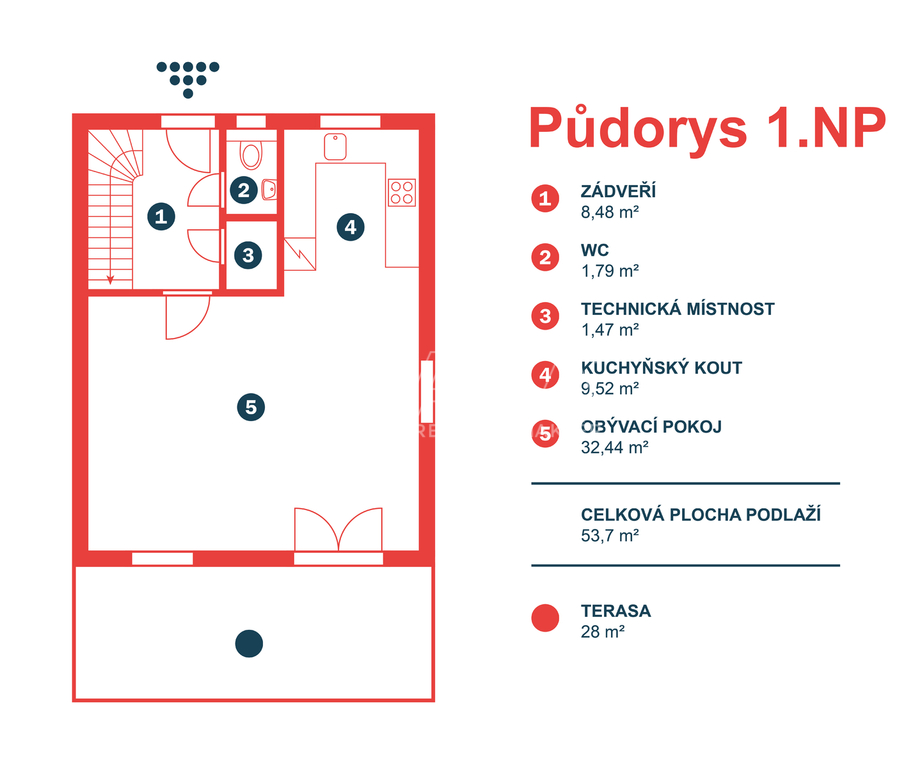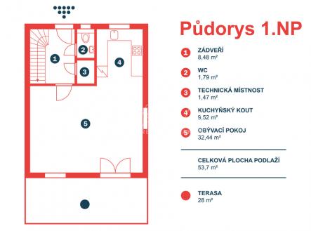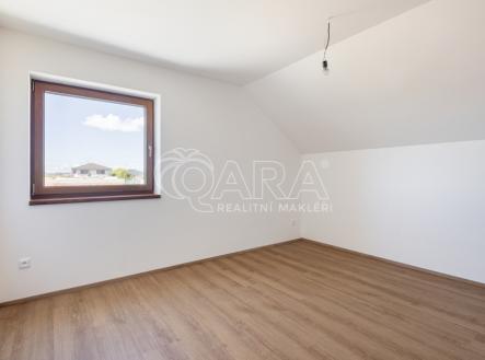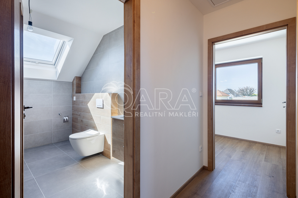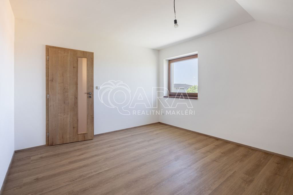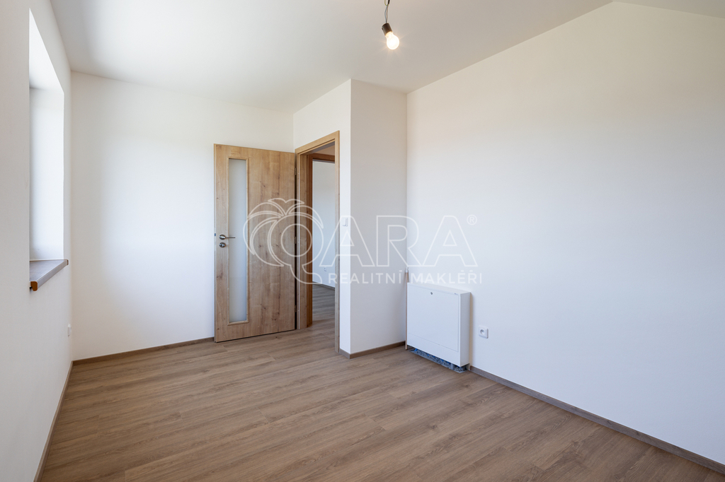 REZERVOVÁNO Exkluzivní nabídka prodeje novostavby rodinného domu koncipovaného jako polovina dvojdomku (vchod A) v nově vznikající zástavbě v Benešově na Mariánovicích. Dům o dvou podlažích (1. NP 54 m², 2. NP 50 m²) je dispozičně řešen jako 4+kk, přičemž v přízemí se nachází společenská zóna: obývací pokoj s kuchyňským koutem, předsíň, samostatné WC a technická místnost. V patře jsou tři samostatné ložnice a velkorysá koupelna se sprchovým koutem (v koupelně je také skrytá příprava pro vanu) a s WC. Téměř v celém domě je položena rigidní vinylová podlaha, v předsíni, technické místnosti a v koupelně je dlažba. V půdním prostoru je vytvořena pochozí půda o velikosti cca 25 m² k ukládání sezónních věcí. Vytápění domu a ohřev teplé vody zajišťuje tepelné čerpadlo Panasonic (v obou podlažích je teplovodní podlahové vytápění, v koupelně je topný žebřík). Jako alternativní zdroj vytápění je možné nainstalovat krbová kamna (komín je připraven). Dům je připojen na obecní vodovod a kanalizaci. Dům je francouzským oknem v obývacím pokoji přirozeně propojen se zahradou o velikosti 239 m² (jedná se o čistou plochu zahrady ve které není započítána zastavěná plocha, parkoviště a prostor před domem), jejíž součástí je na dům navazující 28 m² vydlážděná terasa, díky jejíž severní orientaci si můžete venkovní prostor užít i v horké a slunné dny. Zahrada je kompletně oplocená, zatravněná a čeká na případné finální úpravy od nových majitelů. Akumulační nádrž (3 m3) pro budoucí hospodaření s dešťovou vodou je již na pozemku umístěna. Před domem se dále nacházejí dvě parkovací stání (vjezd je společný pro celý dvojdomek), přičemž další možnosti parkování jsou v široké ulici před domem. Dům slibuje bezproblémový a nákladově příznivý provoz (energetická náročnost B). Dům je dokončen a připraven na předání novým majitelům. Zkolaudováno v listopadu 2025. Mariánovice jsou poměrně novou a stále se utvářející rezidenční lokalitou na jižním okraji Benešova, kde žijí převážně rodiny s dětmi. Veškerá občanská vybavenost se nachází v pár minut cesty autem vzdáleném centru Benešova, kam se lze také dopravit MHD, která má na Mariánovicích 2 zastávky. BUS MHD zastavuje přímo před spádovou základní školou (8 minut), dále pak další 2 minuty pokračuje na Terminál, což je spojené autobusové a vlakové nádraží (rychlík na Hlavní nádraží cca 35 minut). Hypotéka možná, rádi zařídíme. Většina bank zvýhodňuje pořízení nemovitosti v energetické třídě B slevou z úrokové sazby (cca ve výši 0,2 %)