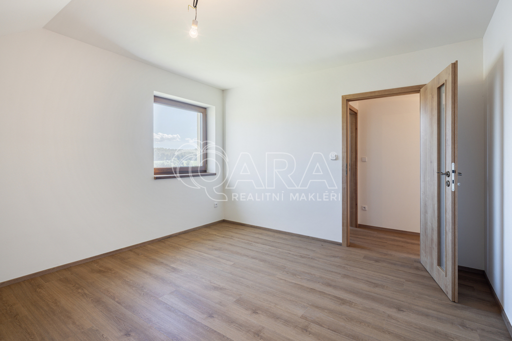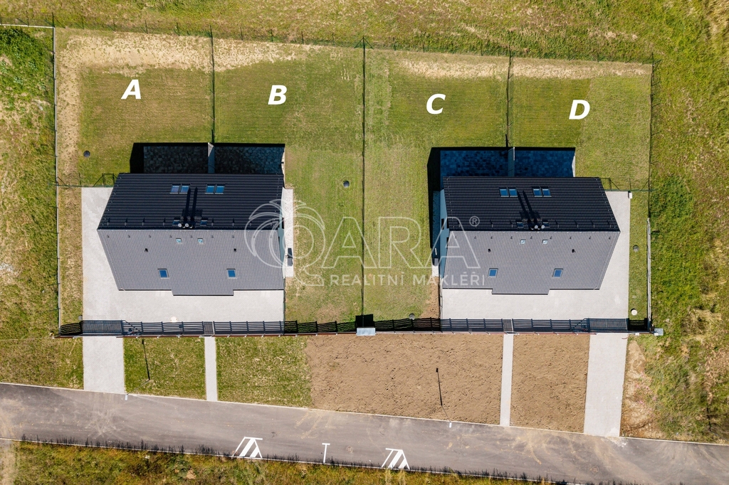 REZERVOVÁNO Exkluzivní nabídka prodeje novostavby rodinného domu koncipovaného jako polovina dvojdomku (vchod B) v nově vznikající zástavbě v Benešově na Mariánovicích. Dům o dvou podlažích (1. NP 54 m², 2. NP 50 m²) je dispozičně řešen jako 4+kk, přičemž v přízemí se nachází společenská zóna: obývací pokoj s kuchyňským koutem, předsíň, samostatné WC a technická místnost. V patře jsou tři samostatné ložnice a velkorysá koupelna se sprchovým koutem (v koupelně je také skrytá příprava pro vanu) a s WC. Téměř v celém domě je položena rigidní vinylová podlaha, v předsíni, technické místnosti a v koupelně je dlažba. V půdním prostoru je vytvořena pochozí půda o velikosti cca 25 m² k ukládání sezónních věcí. Vytápění domu a ohřev teplé vody zajišťuje tepelné čerpadlo Panasonic (v obou podlažích je teplovodní podlahové vytápění, v koupelně je topný žebřík). Jako alternativní zdroj vytápění je možné nainstalovat krbová kamna (komín je připraven). Dům je připojen na obecní vodovod a kanalizaci. Dům je francouzským oknem v obývacím pokoji přirozeně propojen se zahradou o velikosti 358 m², jejíž součástí je na dům navazující 28 m² vydlážděná terasa, díky jejíž severní orientaci si můžete venkovní prostor užít i v horké a slunné dny. Zahrada je kompletně oplocená, zatravněná a čeká na případné finální úpravy od nových majitelů. Akumulační nádrž (3 m3) pro budoucí hospodaření s dešťovou vodou je již na pozemku umístěna. Před domem se dále nacházejí dvě parkovací stání (vjezd je společný pro celý dvojdomek), přičemž další možnosti parkování jsou v široké ulici před domem. Dům slibuje bezproblémový a nákladově příznivý provoz (energetická náročnost B). Dům je dokončen a připraven na předání novým majitelům. Kolaudace na přelomu 9/10 2025. Mariánovice jsou poměrně novou a stále se utvářející rezidenční lokalitou na jižním okraji Benešova, kde žijí převážně rodiny s dětmi. Veškerá občanská vybavenost se nachází v pár minut cesty autem vzdáleném centru Benešova, kam se lze také dopravit MHD, která má na Mariánovicích 2 zastávky. BUS MHD zastavuje přímo před spádovou základní školou (8 minut), dále pak další 2 minuty pokračuje na Terminál, což je spojené autobusové a vlakové nádraží (rychlík na Hlavní nádraží cca 35 minut). Hypotéka možná, rádi zařídíme. Většina bank zvýhodňuje pořízení nemovitosti v energetické třídě B slevou z úrokové sazby (cca ve výši 0,2 %) *Tato polovina dvojdomku je součástí projektu Dvojdomky Mariánovice, který tvoří dva dvojdomky, každý o dvou vchodech (A,B a C,D), přičemž každý vchod je z důvodů požadavků v územním plánu veden jako samostatná bytová jednotka.