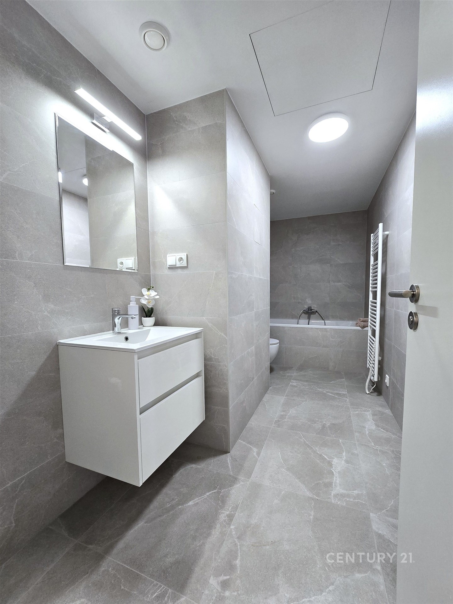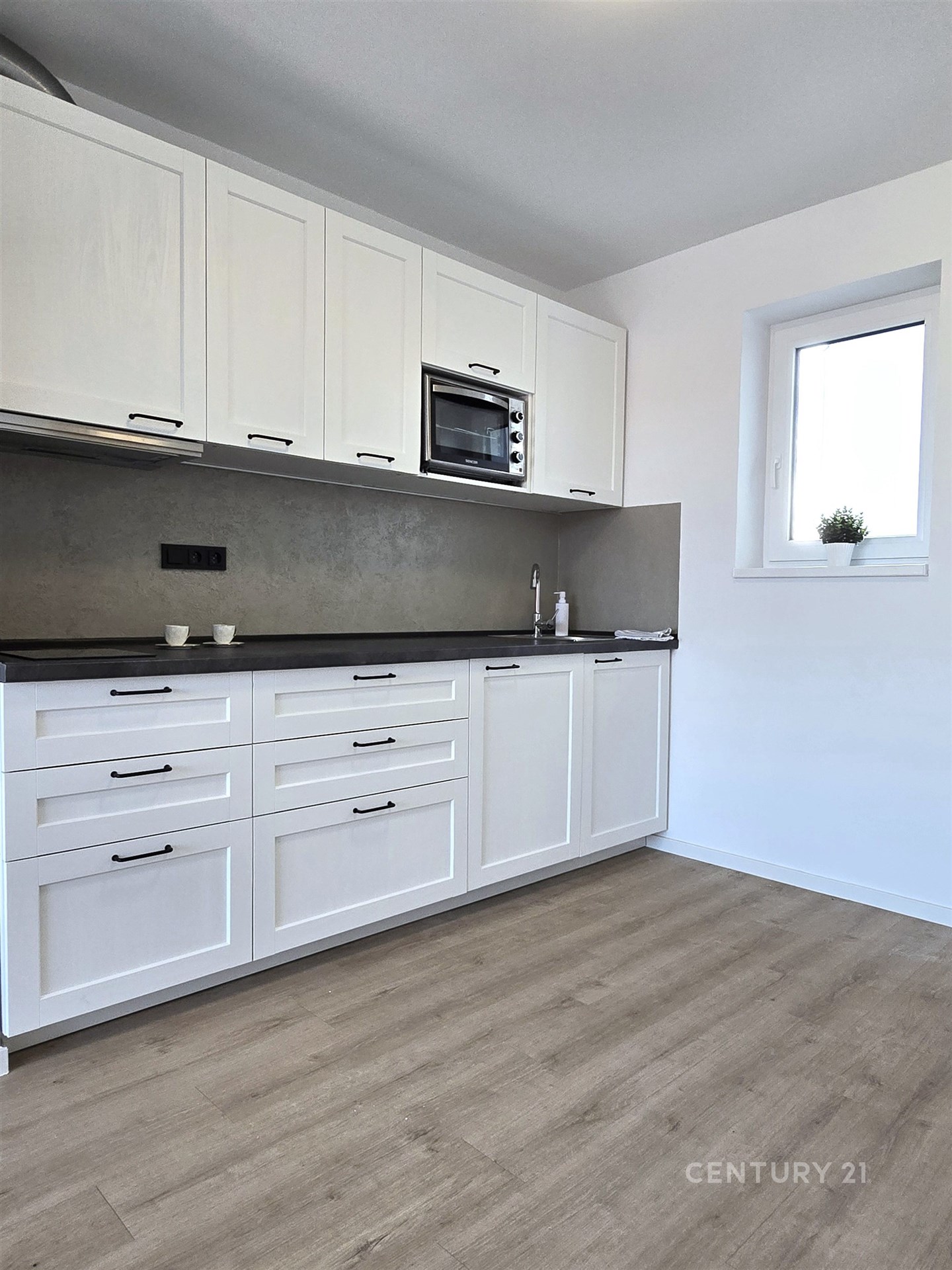 Dovolujeme si Vám nabídnout k pronájmu moderní, velmi hezký slunečný byt 1+KK o velikosti 33,68 m², který se nachází v 5. patře v nově postaveném bytovém domě s výtahem v ulici Dukelská v Benešově. Jeho předností je i to, že má vlastní terasu o velikosti 8,39 m². Byt je připraven k okamžitému nastěhování. Lokalita: Tento nový moderní byt zaručuje pohodlné a klidné bydlení v centru Benešova. Lokalita nabízí veškerou občanskou vybavenost a v docházkové vzdálenosti naleznete restaurace, kavárny, obchody a za 5 min jste pěšky na autobusovém i vlakovém spojení do Prahy. Popis bytu: Kuchyně s novou moderní linkou je vybavena: indukční dvoj plotýnkou, pečící troubou, digestoří a malou vestavěnou lednicí s mrazákem. Na podlaze je keramická dlažba (koupelna, WC, chodba) a plovoucí laminátová podlaha. Vytápění v bytě a ohřev TUV je zajištěn centrálně, v domě jsou plynové kotle a bojlery. Dispozice: 1+kk (obývací pokoj s kuchyňským koutem 19,12 m², koupelna s WC 6,50 m², vstupní hala 4,86 m². Podlahová plocha: 33,68 m² Terasa: 8,39 m² Podlaží bytu: 5NP Stav bytu: velmi dobrý, vymalovaný, připravený k okamžitému nastěhování Nájemné: 14.000, Kč Poplatky: 2.800, (vodné, stočné, ohřev vody, vytápění a služby v domě) Předpokládané náklady na elektrickou energii: 1.500, Kč / měsíc (převedení na budoucího nájemce) Vratná jistota (kauce): dva měsíční nájmy Poplatek RK: 14.000, Kč + 21%DPH Preferujeme dlouhodobý nájemní vztah. Pokud Vás tento byt zaujal, neváhejte nám napsat nebo zavolat a rádi Vám vše ukážeme osobně. Prohlídky jsou možné po předchozí domluvě.