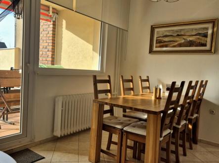 Nabízíme k prodeji řadový rodinný dům s útulnou zahradou a zastřešeným bazénem v klidné části Benešova. Díky své promyšlené dispozici je dům vhodný pro větší rodinu, případně umožňuje úpravu na dvě samostatné bytové jednotky. Celková výměra pozemku činí 466 m², z toho 310 m² připadá na udržovanou zahradu s bazénem o velikosti 15 m². Dům má užitnou plochu 280 m² a je rozdělen do tří podlaží. Ve sníženém přízemí se nachází posilovna o dvou místnostech, koupelna se sprchovým koutem, toaletou a pračkou, šatna, místnost s možností vybudování kuchyně a prostor připravený na saunu, dále technická místnost. Z tohoto podlaží je také přímý vstup na zahradu. V prvním nadzemním podlaží je prostorný obývací pokoj s krbem a velkými okny s výhledem do zahrady, jídelna s přímým vstupem na zastřešenou terasu, plně vybavená kuchyň a samostatná toaleta. V patře se nachází ložnice se vstupem na prostornou lodžii, koupelna se sprchovým koutem i vanou, dva pokoje a šatna s možností využití jako další pokoj či pracovna. Nemovitost prošla rozsáhlou rekonstrukcí – má nová plastová okna a bezpečnostní dveře, předokenní žaluzie, tepelné čerpadlo a garáž se vstupem přímo do domu je vybavena elektrickými vraty. Velkou předností této lokality je klidné prostředí a zároveň pěší dostupnost do centra města, kde se nachází veškerá občanská vybavenost včetně obchodů, školky, školy, nemocnice a vlakového nádraží. K odpočinku láká také nedaleký zámecký park Konopiště v docházkové vzdálenosti, z lodžie je navíc krásný výhled jak na park, tak na zámek. V případě zájmu o bližší informace či prohlídku nás neváhejte kontaktovat.