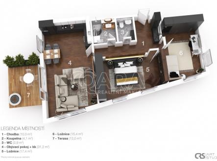 Byt 3+kk 81 m2 u golfu v Berouně se zahrádkou a terasou 90 m2, parkovacím stáním a sklepem