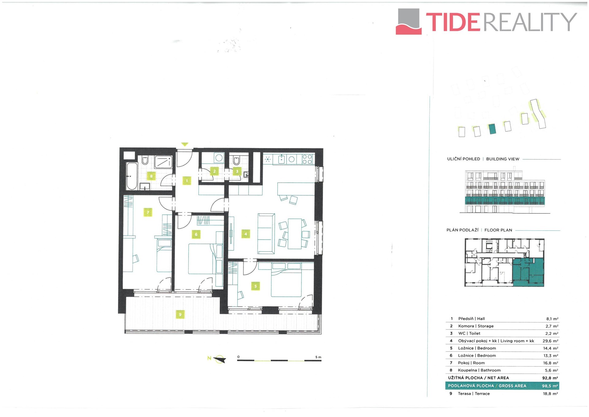 Najděte s námi nový domov v Berouně! Poklidné bydlení uprostřed malebné přírody přesto se vším, co rodiny potřebují ke komfortnímu žití a vyžití, navíc v rychlém dosahu metropole. V tomto novém developerském projektu budou domy vyrůstat podél ulice Na Máchovně, v mírném svahu, který stoupá k vrcholu Děd. 6 samostatných bytových domů nabídne široké rozpětí bytů od 1+kk po 5+kk s terasami, balkony či předzahrádkami. Dokončení v závěru roku 2027. Tento konkrétní byt o podlahové ploše 98,5m2 s terasou 19m2, se bude nacházet ve 2.NP pětipodlažní budovy se 14 bytovými jednotkami. Má velmi příjemnou orientaci na jih a západ. V rámci jeho navržené dispozice 4+kk jsou možné 2 varianty řešení. Typově shodný byt je k dispozici i v jiných budovách a vyšších podlažích. Bytové jednotky 3,4,5+kk mají na výběr také min. 2 parkovací stání venkovní/vnitřní a sklep, které nejsou zahrnuty v ceně bytu. Standardní vybavení bytů zahrnuje plovoucí podlahy, interiérové dveře s výškou 210 cm, moderní vybavení koupelen, okna s barevným rámem a izolačním trojsklem, přípravu na vnější žaluzie. V bytech budou moderní datové rozvody formou strukturované kabeláže a přípojka STA. V projektu bude využita smart technologie pro vytápění, která pracuje se dvěma tepelnými zdroji – tepelnými čerpadly a zemním plynem. Kvalitní a dostupné bydlení v blízkosti centra Berouna i Prahy. Lokalita v malebné krajině Berounska s dobrou dostupností z Prahy (jen 30 km), ať už po dálnici D5 nebo četnými vlakovými či autobusovými spoji. 20 minut autem na metro Zličín. Beroun je ideální místo pro rodinné bydlení s vysokou mírou bezpečí a širokou nabídkou služeb a s mnoha možnostmi aktivního trávení volného času. V pěší vzdálenosti či v přímém sousedství projektu je škola, školka, síť obchodů, veřejné koupaliště, multifunkční sportovní areál, fotbalové hřiště, síť cyklostezek a další. V současné chvíli je ještě možné vybírat u větších bytů mezi 3,4,5+kk v rozmezí 88 až 120m2 i ve vyšších patrech a s prostornými terasami a jednotky přizpůsobit i některým Vašim specifickým požadavkům, proto mne neváhejte co nejdříve kontaktovat. Ráda zodpovím vaše dotazy a pomohu s výběrem i jiného vhodného bytu z tohoto projektu. Využijte všech benefitů, plynoucích z pořízení nemovitosti s předstihem.