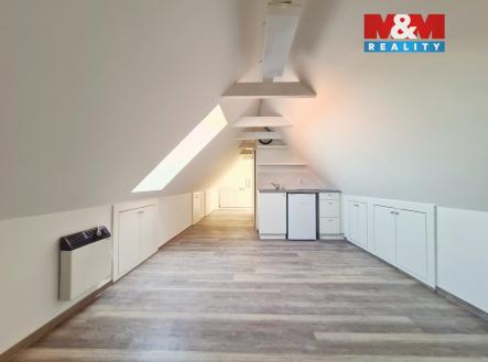 Nabídka prodeje podkrovního bytu 1+kk v osobním vlastnictví o celkové výměře 30 m² v samotném centru Berouna. Vstup do domu z ulice Hradební. Byt prošel rekonstrukcí v roce 2021. Plovoucí vinylová podlaha, střešní okna, izolovaná střecha, úložné prostory ve snížených stěnách bytu. Kuchyňská linka s elektrickou varnou deskou, lednička, elektrické přímotopy i v koupelně, bojler pro ohřev teplé vody. Koupelna s vanou, pračkou, toaletou a umyvadlem. Veškerá občanská vybavenost v místě, výborná dopravní dostupnost. Byt je v současnosti pronajatý. Pro více informací a domluvení prohlídky kontaktujte makléře.