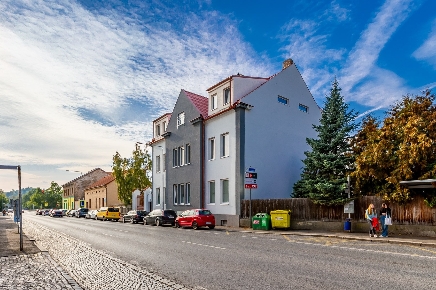 Nabízíme k prodeji byt v prvorepublikové vile o dispozici 4+1 v ulici Pražská, Beroun. Jednotka se nachází v 2.nadzemním podlaží vily procházející kompletní rekonstrukcí. Při celkové velikosti 183,8 m2 vychází cena na necelých 65.000,-Kč za metr čtvereční. Je možnost stavebně rozdělit byt na dvě jednotky. Jednotka sestává z obývacího pokoje, kuchyně, třech pokojů, koupelny, samostatného WC, komory a vstupní haly. Kuchyně je vybavena kuchyňskou linkou. Místnosti jsou prostorné, navíc díky vysokým stropům velice vzdušné. K dispozici je velký sklep v suterénu domu. Bytová jednotka disponuje vlastním plynovým kotlem. Nová plastová okna jsou vybavena elektrickými předokenními žaluziemi. Vila má novou střechu s vestavbou, opravené vnitřní prostory, nová okna i fasádu. Vjezdová brána s pohonem na dálkové ovládání a parkovací místo ve dvoře. Možnost přikoupení zahrady. Pár metrů od domu se nachází autobusová zastávka, v docházkové vzdálenosti se nachází železniční zastávka. Samozřejmostí je veškerá občanská vybavenost v okolí a skvělé napojení na dálnici D5.