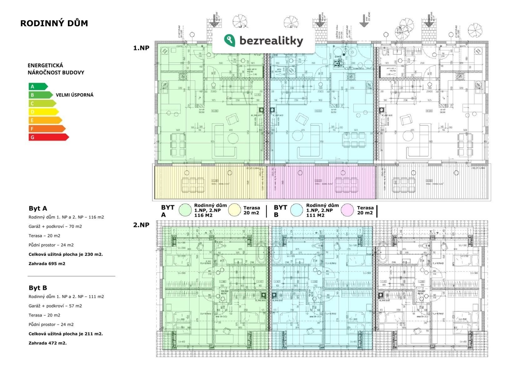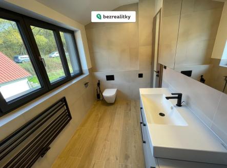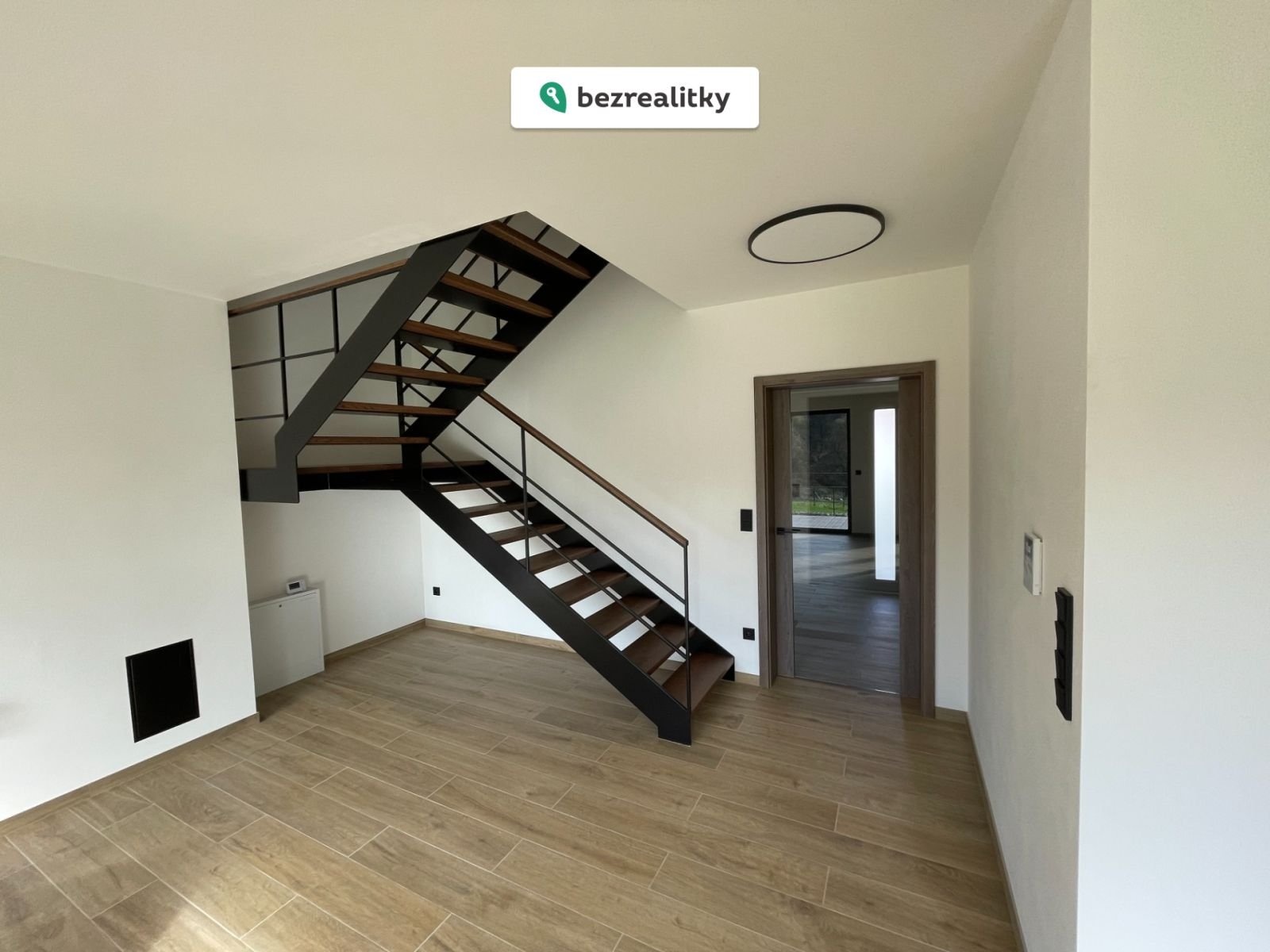 RD Hostím - Dům B Část k bydlení - 4+KK 111 m2, Terasa 20 m2, Půda 24 m2. Garáž 36 m2, Sklad nad garáží 21 m2. Zahrada 472 m2. 2 parkovací stání. Hledáte bydlení v přírodě a nedaleko od města? Vaší novou adresou může být Hostím u Berouna, V Lukách č. p. 58. Novostavba se nachází jihozápadně od Prahy na kouzelném místě Českého krasu mezi Svatým Janem pod Skalou a Srbskem pouhých 6 km od potřebné občanské vybavenosti (školky, školy, kulturní zařízení, nemocnice, obchody, služby), kterou vám poskytne moderní město Beroun. Do Prahy se dostanete po dálnici D5 za 15 minut. Hostím je propojen s centrem města MHD (bus). V místě můžete ochutnat vyhlášenou domácí kuchyni v hospůdce U Krobiána nebo se vydat podél říčky Loděnice do malebného údolí řeky Berounky. Proč si koupit právě tento dům? - Úžasné místo pro život v přírodě; - Řemeslně provedená stavba domu z kvalitních materiálů s důrazem na každý detail; - Energeticky nízkonákladová budova vytápěná tepelným čerpadlem; - Moderně navržené koupelny a osvětlení domu. Použité materiály a stavební prvky domu: Obvodové a nosné zdivo – vápenopískové bloky. Střešní krytina z pálených tašek. Oplechování vikýřů z hliníkového plechu. Sádrové omítky. Lité podlahy. Sádrokartonové podhledy. Fasáda zateplená + kreativní omítka. Plast-hliníková okna a dveře s trojskly. Nerez ovládací kliky. Výplně na JZ stranu opatřeny vnější žaluzií s elektrickým pohonem. HS portál v obývacím pokoji. Podlahy – v celém přízemí a ve 2. NP koupelna a chodba - keramická dlažba. Ložnice vinyl. Obklady – v koupelnách – velkoformátový keramický obklad. Baterie v koupelnách Hansgrohe. Vnitřní parapety – masív, mořený. Vnitřní schodiště – ocelová konstrukce v černé barvě, masívní dubové stupně a madlo zábradlí. Terasa – WPC terasová prkna, ocelové žárově-zinkované zábradlí, obložení kamenným gabionem z nedalekého lomu. Bez realitní kanceláře! Tato nemovitost je určena výhradně přímým zájemcům o koupi. Na inzerát můžete také reagovat přímo na webu Bezrealitky: https://www.bezrealitky.cz/nemovitosti-byty-domy/971866-nabidka-prodej-domu-v-lukach-beroun