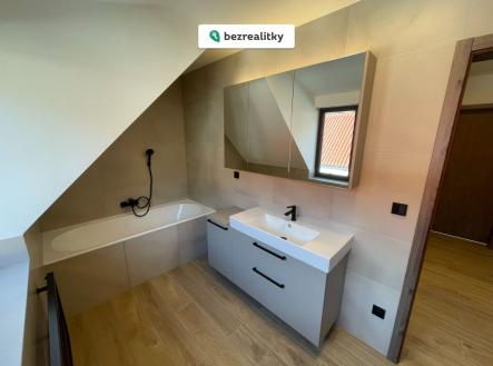 RD Hostím - Dům A Část k bydlení - 4+KK 116 m2, Terasa 20 m2, Půda 24 m2. Garáž 36 m2, Sklad nad garáží 34 m2. Zahrada 695 m2. 2 parkovací stání. Hledáte bydlení v přírodě a nedaleko od města? Vaší novou adresou může být Hostím u Berouna, V Lukách č. p. 58. Novostavba se nachází jihozápadně od Prahy na kouzelném místě Českého krasu mezi Svatým Janem pod Skalou a Srbskem pouhých 6 km od potřebné občanské vybavenosti (školky, školy, kulturní zařízení, nemocnice, obchody, služby), kterou vám poskytne moderní město Beroun. Do Prahy se dostanete po dálnici D5 za 15 minut. Hostím je propojen s centrem města MHD (bus). V místě můžete ochutnat vyhlášenou domácí kuchyni v hospůdce U Krobiána nebo se vydat podél říčky Loděnice do malebného údolí řeky Berounky. Proč si koupit právě tento dům? - Úžasné místo pro život v přírodě; - Řemeslně provedená stavba domu z kvalitních materiálů a s důrazem na každý detail; - Energeticky nízkonákladová budova vytápěná tepelným čerpadlem; - Moderně navržené koupelny a osvětlení domu. Použité materiály a stavební prvky domu: Obvodové a nosné zdivo – vápenopískové bloky. Střešní krytina z pálených tašek. Oplechování vikýřů z hliníkového plechu. Sádrové omítky. Lité podlahy. Sádrokartonové podhledy. Fasáda zateplená + kreativní omítka. Plast-hliníková okna a dveře s trojskly. Nerez ovládací kliky. Výplně na JZ stranu opatřeny vnější žaluzií s elektrickým pohonem. HS portál v obývacím pokoji. Podlahy – v celém přízemí a ve 2. NP koupelna a chodba - keramická dlažba. Ložnice vinyl. Obklady – v koupelnách – velkoformátový keramický obklad. Baterie v koupelnách Hansgrohe. Vnitřní parapety – masív, mořený. Vnitřní schodiště – ocelová konstrukce v černé barvě, masívní dubové stupně a madlo zábradlí. Terasa – WPC terasová prkna, ocelové žárově-zinkované zábradlí, obložení kamenným gabionem z nedalekého lomu. Bez realitní kanceláře! Tato nemovitost je určena výhradně přímým zájemcům o koupi. Na inzerát můžete také reagovat přímo na webu Bezrealitky: https://www.bezrealitky.cz/nemovitosti-byty-domy/971863-nabidka-prodej-domu-v-lukach-beroun