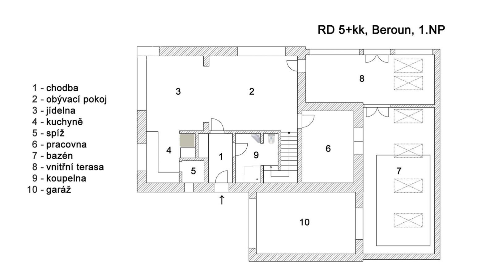 Dovolujeme si vám nabídnout ke koupi tento rodinný dům na prestižní berounské adrese v lokalitě Na Paloučku ve vilkové čtvrti. Rodina si pochvaluje městské bydlení s nedalekou základní a mateřskou školu, obchodní zónu, relativně blízký nájezd na dálnici D5 a především klid, pohodu a bezpečí, a zároveň blízkost přírody. Patrový dům s dispozicí 5+kk, garáží, dvěma koupelnami, šatnou, a především s krytým bazénem, leží na pozemku o velikosti 1060 m2 a nabízí komfort 234 m2 celkové užitné plochy - 215 m2 užitné plochy + 19 m2 garáž. Rozhodně vás zaujme nádherná okrasná zahrada, která je tvořena zákoutími a různými ostrůvky keřů, stromků a květin. Je tu několik malých záhonků s jahodami a ovocnými stromy, a velkým bonusem je automatický závlahový systém. Srdcem domu je obývací pokoj s krbovými kamny a jídelna prosvětlená velkými okny. Na ni navazuje kuchyně se spíží. Dále tu naleznete pracovnu a koupelnu se sprchou. Krytý bazén je tou pomyslnou třešničkou a pro nové majitele je důležitá informace o jeho napojení na tepelné čerpadlo i připravenosti místa pro infra saunu. Navazující uzavřená terasa slouží k odpočinku a zábavě s přáteli. Do prvního patra se vstupuje schodištěm z obývacího pokoje a kromě ložnice, šatny a velké koupelny s vanou tu jsou další dva pokoje. Věřím, že se vám dům i toto krásné okolí vilkové čtvrti líbí. Věřím, že vás oslovilo bydlení v královském městě Berouně, které je svými hradbami, řekou Berounkou a bohatou historií i blízkostí Prahy vyhledávaným místem k životu. Kontaktujte mě a domluvte si svůj termín a čas prohlídky. Budu se těšit.