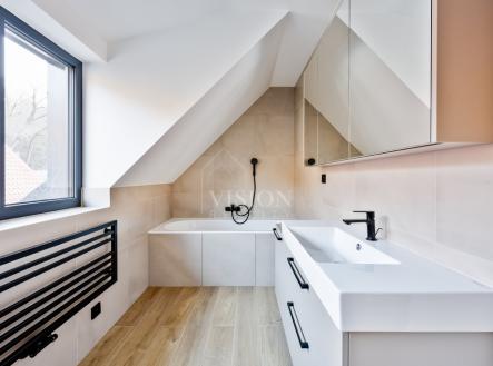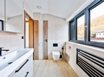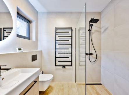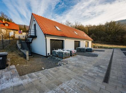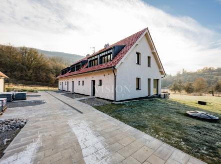Nabízíme k prodeji novostavbu rodinného domu v klidné a vyhledávané lokalitě Beroun-Hostim. Tento řadový rodinný dům má dvě nadzemní podlaží o užitné ploše 116 m² a zastavěné ploše 155 m². Dům je situovaný na pozemku o celkové výměře 1096 m². Dispozice 4+kk nabízí ideální zázemí pro rodinné bydlení i dostatek prostoru pro práci z domova. Dispozice domu je prakticky a funkčně řešená: V přízemí se nachází velký světlý obývací pokoj s přímým vstupem na terasu prostřednictvím bezprahového HS portálu, který zajišťuje dostatek denního světla a přirozeně propojuje interiér se zahradou. V obývacím pokoji se nachází krb a kvalitní dubové schody. Pokoj je propojen s prostorným kuchyňským koutem. Ve spodním patře dále najdete koupelnu se sprchovým koutem, chodbu a technickou místnost, kde je dostatek prostoru pro uložení věcí nebo si vytvořit vysněnou šatnu. Ve druhém nadzemním podlaží jsou umístěny tři pokoje a koupelna s vanou. Nádherný výhled z každého pokoje je opravdu zaručen. Dům je postaven z kvalitních vápenopískových bloků, které zajišťují výborné konstrukční a akustické vlastnosti. Střešní krytina z pálených tašek v kombinaci s hliníkovým oplechováním vikýřů garantuje dlouhou životnost a odolnost vůči povětrnostním vlivům. Fasáda je zateplena a opatřena kreativní omítkou, která domu dodává moderní a čistý vzhled. Interiér je řešen s důrazem na moderní design a funkčnost. Sádrové omítky, lité podlahy v přízemí a na chodbě ve 2. NP a sádrokartonové podhledy vytvářejí vzdušnou a harmonickou atmosféru. Plast-hliníková okna a dveře s izolačními trojskly jsou samozřejmostí, stejně jako vnější žaluzie s elektrickým ovládáním na jihozápadní straně domu, které zajišťují tepelný komfort i soukromí. Podlahy v ložnicích jsou řešeny kvalitním vinylem, koupelny jsou obloženy velkoformátovým keramickým obkladem a vybaveny designovými bateriemi značky Hansgrohe. Vnitřní parapety z masivního dřeva s mořením podtrhují celkový standard interiéru. Výrazným designovým prvkem je vnitřní schodiště s ocelovou konstrukcí v černém provedení, doplněné masivními dubovými stupni a madlem zábradlí, které působí elegantně a nadčasově. Terasa je provedena z WPC terasových prken a doplněna o ocelové žárově zinkované zábradlí s kamenným gabionem z nedalekého lomu, což vytváří příjemné místo pro relaxaci a posezení s rodinou či přáteli. Celková plocha pozemku poskytuje dostatek prostoru pro zahradu, odpočinek i další využití dle vlastních představ. Lokalita je velice výhodná. Obec Hostim se nachází pouze 6km od Berouna a 30km od Prahy. Hostim tak nabízí klid, přírodu a absolutní ticho, ale zároveň Rychlou dostupnost do velkých měst. Pokud hledáte moderní a kvalitní bydlení v klidné lokalitě s dobrou dostupností, tato nemovitost rozhodně stojí za osobní prohlídku. Rádi vám ji představíme osobně.
