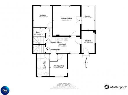 Nabízíme k prodeji rodinný dům, který je součástí dvojdomu, nacházející se v klidné části města Beroun–Zdejcina. Nemovitost spojuje komfortní rodinné bydlení, soukromí a příjemné okolí přírody s výbornou dostupností do centra Berouna i na dálnici D5. Hlavní parametry Typ: rodinný dům (součást dvojdomu) Celková užitná plocha: 194 m² PP (suterén): 49 m² NP: 82 m² NP (půda určená k půdní vestavbě): 63 m² Balkon: 8 m² | Patio: 9 m² Pozemek (zahrada): 1 039 m² – ve vlastnictví majitele domu Energetická náročnost budovy: třída G – zatím uvádíme G, PENB bude vypracován později Popis a dispozice Dům má samostatný vstup, vlastní zahradu a je zcela nezávislý na druhé polovině dvojdomu. V přízemí se nachází předsíň, obývací pokoj propojený s kuchyní, dvě ložnice, šatna, koupelna a technické zázemí. Z přízemí vede schodiště do suterénu (sklepa) a na půdu, která je připravena k půdní vestavbě – vhodné pro rozšíření obytného prostoru nebo vybudování samostatné jednotky. Suterén nabízí dostatek prostoru pro skladování, dílnu či hobby využití. Interiér je proveden ve vysokém standardu a částečně zařízen. Součástí je udržovaná zahrada poskytující soukromí i prostor pro relaxaci a rodinné posezení. Parkování je možné na pozemku nebo před domem na veřejné komunikaci. Lokalita Zdejcina je vyhledávaná a klidná část města Beroun, obklopená přírodou Křivoklátska, s výbornou dostupností do centra (cca 5 minut jízdy). V okolí se nachází škola, školka, obchody, zastávka autobusu i široké možnosti sportovního a volnočasového vyžití. Financování Nákup této nemovitosti je možné financovat hypotečním úvěrem, se kterým vám rádi pomůžeme – včetně nezávazného srovnání nabídek bank a zajištění kompletního hypotečního servisu zdarma. V případě zájmu zajistíme také právní servis a advokátní úschovu prostřednictvím ověřené advokátní kanceláře. Disclaimer Tento inzerát má výhradně informativní charakter a nepředstavuje veřejný příslib ve smyslu § 1731 a násl. občanského zákoníku. Veškeré údaje jsou čerpány z podkladů poskytnutých vlastníkem nemovitosti a mohou se v průběhu času měnit. Společnost Brodan&Kutzendörfer Reality si vyhrazuje právo změny nebo ukončení nabídky bez předchozího upozornění.