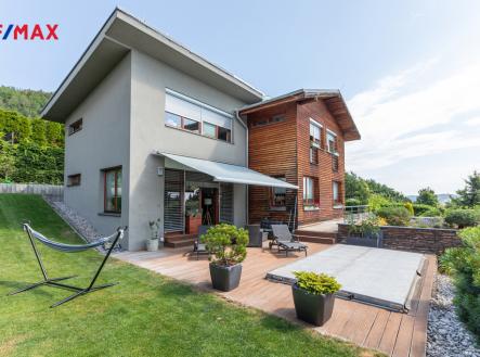 Exkluzivně nabízíme jedinečnou nemovitost umístěnou v klidné slepé ulici, v rezidenční lokalitě, jen pár kroků od vstupu do rozlehlého lesa, přitom v pěším dosahu veškeré občanské vybavenosti města Berouna vzdáleného cca 15 minut automobilem od metra Zličín. Zděný dům s promyšlenou dispozici 5+1 je obklopen zahradou s parkovou úpravou, se vzrostlými stromy a stálezelenými keři. Nemovitost má jižní orientaci a jedinečný výhled z terasy a všech místností do údolí řeky Berounky a na okolní kopce. Dům s celkovou užitnou plochou 301 m2 byl dokončen v roce 2008, má dvě nadzemní podlaží a jedno podzemní s dvougaráží, technickou místností, skladem, místem na saunu a chodbou (celkem toto podlaží o výměře 80 m2). V přízemí domu je díky vysokému stropu velmi vzdušný a prostorný obývací pokoj s jídelnou a kuchyní (celkem o výměře 60 m2), spíž, koupelna s WC, pracovna / pokoj pro hosty, zádveří a chodba (celkem toto podlaží o výměře 112 m2). V patře domu jsou tři ložnice, dvě koupelny, šatna, prádelna, chodba a balkon (celkem toto podlaží o výměře 109 m2). Základní parametry domu – zdivo Porotherm + zateplení 12 cm, omítky + dřevěný a kamenný obklad, dřevěná eurookna, střecha - titanzinek, vytápění kondenzačním plynovým kotlem zn. Buderus, teplovodní podlahové vytápění v celém přízemí + v celém patře kromě ložnic. Podlahy jsou plovoucí dřevěné – bělený dub, dlažba, ve všech pokojích jsou předokenní žaluzie V koupelnách byly použiti nadstandardní zařizovací předměty, dlažba a obklady. Kuchyňská linka je ve vysoké kvalitě se spotřebiči zn. Siemens. V obývacím pokoji je krb. Dům je vybaven zabezpečovacím zařízením a v obývacím pokoji, jídelně a ložnici rodičů je klimatizace. Terasa o výměře 46 m2 má dřevěnou podlahu, zapuštěné Swim spa s protiproudem a vířivkou od firmy USSPA a elektricky ovládanou markýzu. V zahradě je vybudované velké zastřešené posezení s funkční kuchyní. Ve spodní části pozemku lze parkovat další automobily pod přístřeškem nebo před dvougaráží. Doporučuji prohlídku této výjimečné nemovitosti.