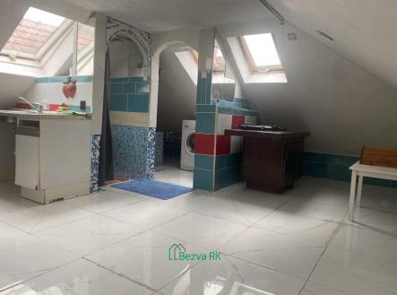 Nabízíme k dlouhodobému pronájmu podkrovní byt o dispozici 1+1 a velikosti cca 90m². Bytová jednotka je umístěna ve 2.NP domu v centru Berouna. Byt je v původním stavu s dostatečným prosvětlením, i díky střešnímu oknu. V domě je ještě jedna bytová jednotka, kde bydlí majitel a přízemí domu je pronajímáno ke komerčním účelům. Pronajímáno ve stávajícím stavu, možno vystěhovat nábytek. Dispozice jednotky: -místnost využívaná jako kuchyň -koupelna s vanou, s umyvadlem a s WC -velký pokoj, který lze rozdělit a využívat jako obývací pokoj a ložnici Nájemné – 16.000 Kč/měs. Zálohy na služby – 4.000 Kč/měs. Vratná kauce – 32.000 Kč Poplatek RK - 19.360,-Kč