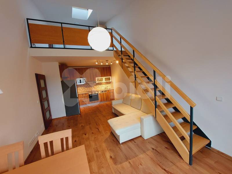 Naše společnost Vám doporučuje k pronájmu byt 3+kk 74 m2 v Berouně, v oblíbené a vyhledávané lokalitě Palouček. Jedná se o mezonetový byt ve 2NP, který je částečně vybaven. Vstupní chodba, koupelna s vanou (pračka), samostatné wc, prostorný obývací pokoj s kuchyňskou linkou (lednice), ze kterého se po schodech dostaneme do mezonetového prostoru (velká šatní skříň) a pokoje. Dále zde je další pokoj, ve kterém je vytvořeno spaní na dřevěné konstrukci (patro). V místě veškerá občanská vybavenost, parkování možno u domu. K bytu náleží sklepní koje v domě, možnost využití kočárkárny/kolárny. Nájezd na dálnici D5 do 5min. K nájemnému je třeba připočítat zálohy na služby ve výši Kč 7.600,-. Vřele doporučujeme!.