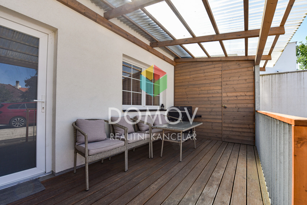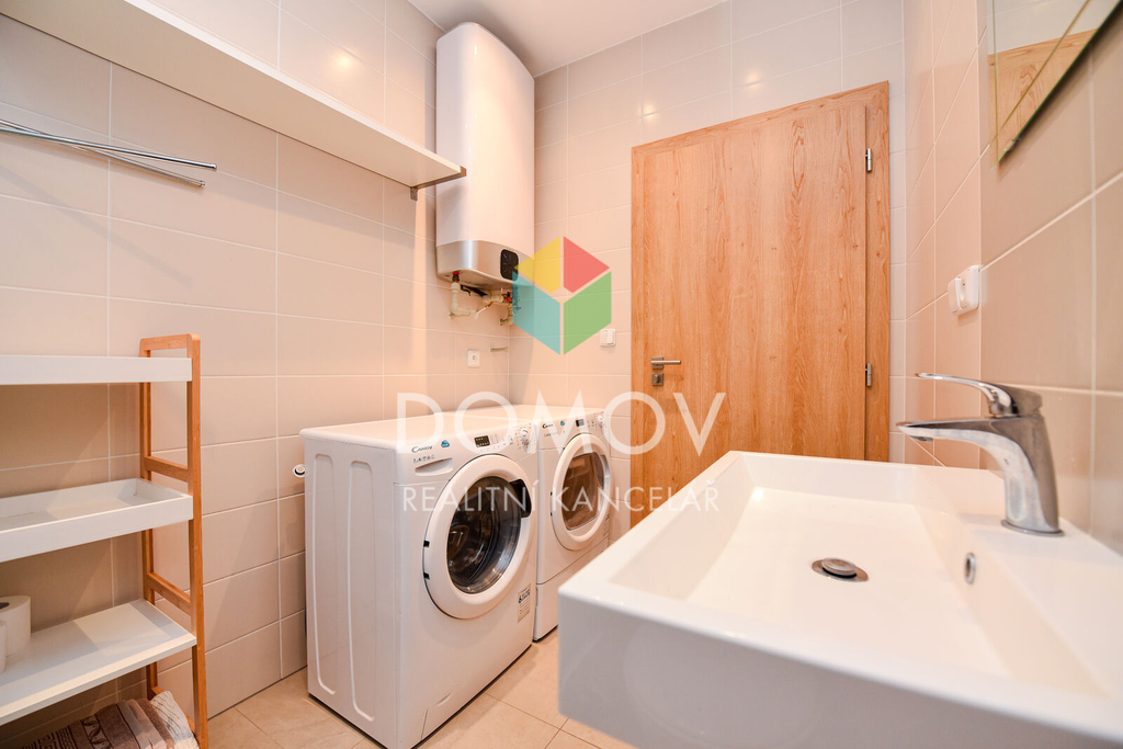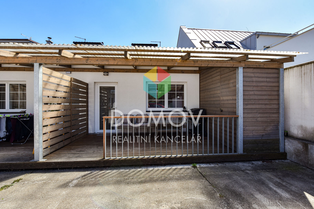 V klidné části Beroun – Závodí, v tiché Svatojánské ulici, nabízíme pronájem dvojdomku o dispozici 4+kk s terasou a parkovacím stáním. Tento cihlový dům, zkolaudovaný v roce 2017, vás okouzlí svým promyšleným dispozičním řešením a útulnou atmosférou, díky které se tu budete cítit doma od prvního dne. Dispozice 4+kk nabízí celkovou užitnou plochu 86 m². 1. NP: Vstupní chodba, světlá kuchyně s oknem a moderní linkou včetně spotřebičů, na kterou navazuje prostorný obývací pokoj. Dále ložnice, komora a koupelna. 2. NP: Dva samostatné pokoje (vznikly rozdělením původně jednoho velkého), koupelna s oknem, vanou a toaletou. V domě jsou plastová okna, plovoucí podlahy, v chodbě, koupelnách a WC dlažba, obložkové dveře a žaluzie. Vytápění zajišťuje elektrokotel – v přízemí podlahové vytápění, v patře radiátory. Ohřev vody bojlerem. Za domem vás potěší terasa se zastřešenou pergolou a zahradním domkem, ideální pro letní posezení. K domu náleží jedno soukromé parkovací stání v uzavřeném komplexu s elektrickými vraty. Součástí areálu je i společný pozemek, který můžete využít k odpočinku nebo jako hřiště pro děti. V bezprostředním okolí domu najdete vše, co potřebujete pro pohodlný rodinný život – obchody, školy, restaurace i místa k odpočinku máte doslova pár kroků od domovních dveří. Beroun Vám nabídne i perfektní dopravní spojení – na D5 jste autem za dvě minuty, do Prahy dojedete rychle a pohodlně. Dům je volný ihned.