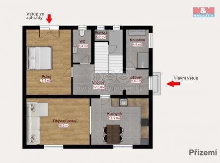 K pronájmu prostorný rodinný dům o dispozici 4+1 a celkové podlahové ploše 125 m2 v Berouně v ulici Na Tržišti. Dům je čerstvě po velmi precizně provedené rekonstrukci. V přízemí se nachází vstupní chodba, prostorná kuchyně částečně propojená s obývacím pokojem, ložnice s přímým vstupem na terasu v zahradě, koupelna, samostatné WC s umývárnou a komora s přívodem pro umístění pračky. V patře najdeme chodbu s výstupem na další terasu, rozlehlý podkrovní pokoj a ložnici. Suterén disponuje technickou místností a sklepem. Vytápění a ohřev teplé vody je zajištěno plynovým kotlem. Okolo domu je upravená okrasná zahrada o výměře 285 m2 se zahradním domkem. Dům se nabízí nezařízený, určený k dlouhodobému pronájmu. Veškerá občanská vybavenost v docházkové vzdálenosti. Výborná dopravní dostupnost - Praha Zličín 15 minut