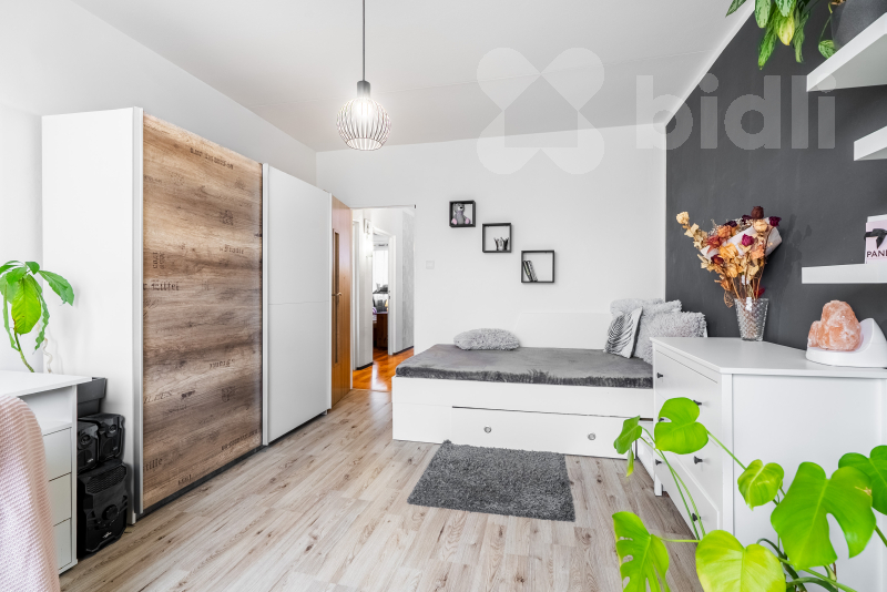 Nabízíme k prodeji prostorný byt o dispozici 3+1 s podlahovou plochou 80 m2. Nachází se 7. patře revitalizovaného panelového domu s výtahem, v ulici Sídliště Za Chlumem. Před lety prošel kompletní rekonstrukcí, jádro je zděné. Byt je ve velmi dobrém, udržovaném stavu a připraven k nastěhování bez nutnosti okamžitých investic. Součástí bytu je lodžie, která navazuje na obývací pokoj a komora na chodbě, která poskytuje praktický úložný prostor. Byt se prodává z velké části vybavený (kromě vybavení ložnice). Je vhodný jak pro vlastní bydlení, tak jako investiční příležitost.