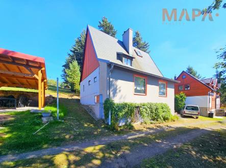 Krásné výhledy do okolní krajiny, klid a možnost zrekonstruovat rekreační chatu na celoroční bydlení. Na pozemku o rozloze 1347 m se zastavěnou plochou 80 m se nachází zděná chata o dispozici 3+kk, s evidenčním číslem, o 2 nadzemních podlažích a s drobnějším balkonem jako takovým menším bonusem. Do chaty je přivedena elektřina a užitková voda, tudíž by bylo vhodné nechat si zhotovit vlastní studnu s pitnou vodou, jako to mají sousedé z okolních chat. Odpad je svedený do žumpy. Chata je určena ke kompletní rekonstrukci, aby Vám mohla sloužit k celoročnímu užívání tak jako slouží mnoha sousedům v okolí. Rozsah rekonstrukce bude ale samozřejmě záležet na Vašich potřebách a hlavně finančních možnostech. Když se chatu rozhodnete rekonstruovat, tak Vás bude jistě zajímat, že se konstrukčně jedná o zděnou stavbu s jednou větší místností spojenou s kuchyní ve spodním patře, WC, koupelnou a malou kotelnou. Ve druhém patře se nacházejí dvě propojené místnosti. Má dřevěná okna, není zateplená a po úpravách může dál sloužit jako rekreační objekt. To je ale svým způsobem škoda s ohledem na její potenciál. Pozemek za chatou je mírně svažitý, s množstvím okrasných stromů a keřů. Co se týče přístupové cesty a parkování možností je několik. Buď na obecním pozemku kousek od hranice parcely, nebo přímo na vlastním pozemku. Navíc vzhledem ke sklonu příjezdové cesty musíte počítat s možnými komplikacemi (zejména pokud by napadlo větší množství sněhu). Zahrada je díky svému tvaru působivě rozlehlá. Vstup na pozemek by byl možný z obou jeho konců. Pokud máte pocit, že byste si s touto příležitostí poradili, tak mi napište nebo zavolejte a domluvíme si termín prohlídky, na které se na Vás budu těšit.
