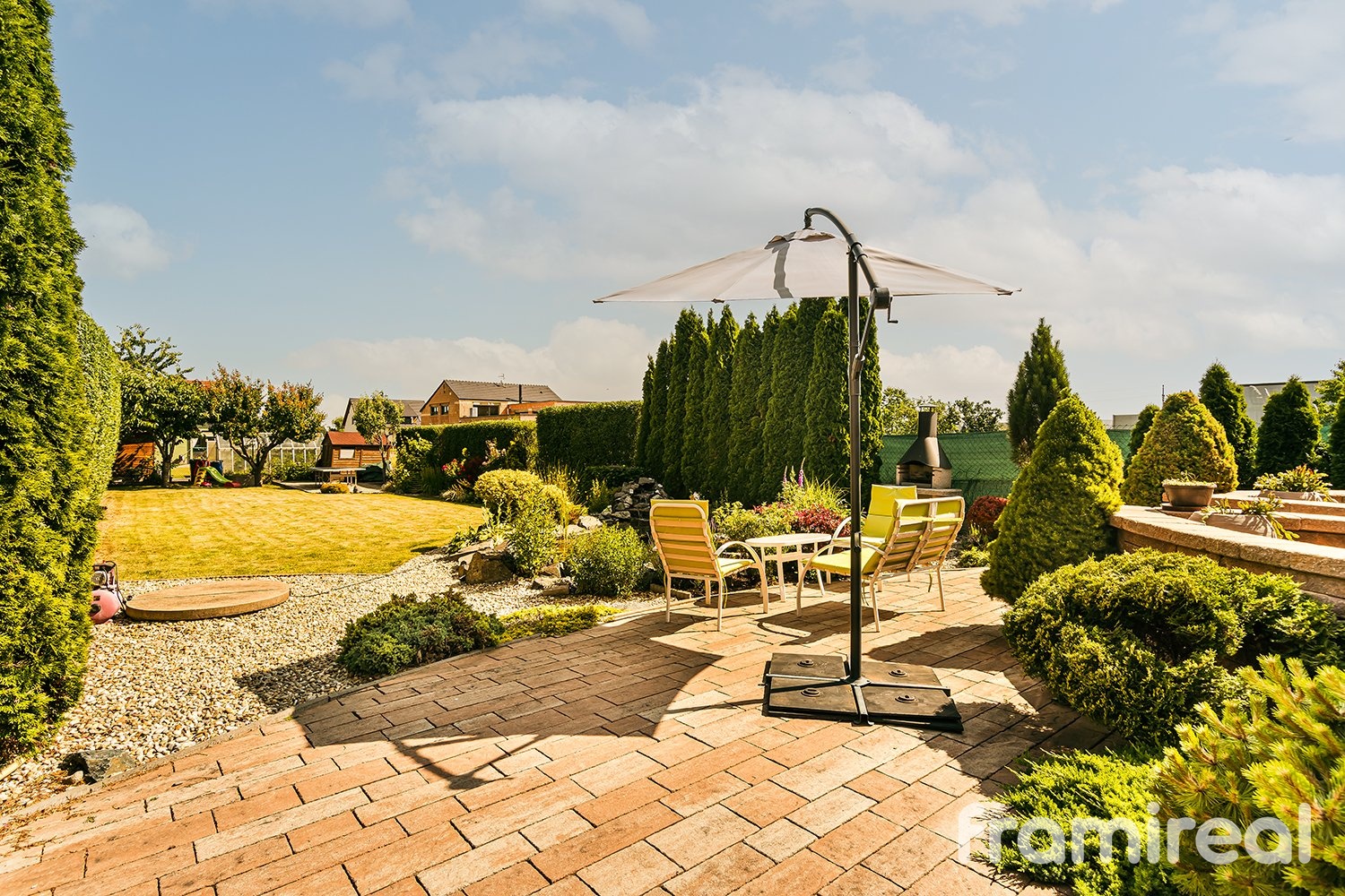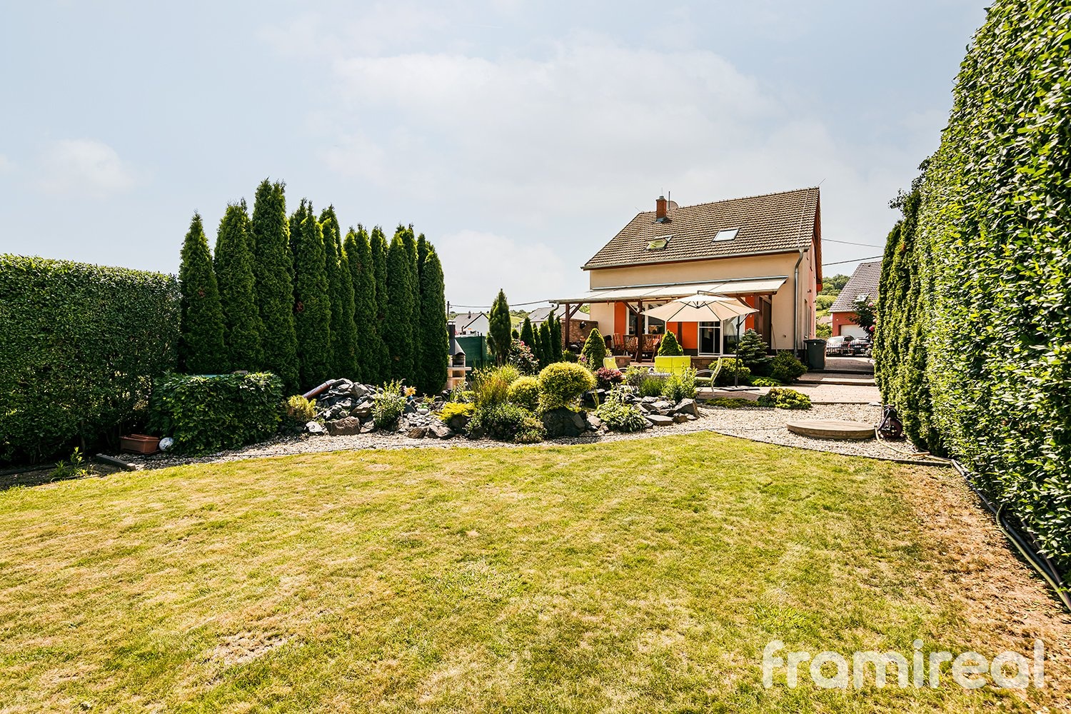 Dobrý den, nabízíme ke koupi rodinný dům v obci Blučina (okres Brno-venkov), která se nachází jen několik minut jízdy od Brna. Dům byl kolaudován v prosinci 2012, má užitnou plochu 152 m² a stojí na pozemku o rozloze 670 m². Celkově působí velmi udržovaně a nabízí příjemné a funkční zázemí pro rodinné bydlení. V přízemí se nachází obývací pokoj s krbem a klimatizací, propojený s kuchyňským koutem a jídelnou. Podlahové vytápění v kombinaci s mramorovou dlažbou zajišťuje příjemnou teplotu i v chladnějších dnech. Dále je zde ložnice s vestavěnou skříní, dvě samostatné spíže (komory), chodba, koupelna se sprchovým koutem a samostatná toaleta. Z obývací části je vstup na terasu krytou pergolou, která poskytuje prostor pro venkovní posezení a výhled do zahrady s pečlivě udržovanou zelení. V patře jsou umístěny tři prostorné pokoje, koupelna s rohovou vanou a toaletou a pochozí půda vhodná pro úložné účely. Vytápění v patře je řešeno radiátory. Zahrada je osázena vzrostlými dřevinami a nabízí dostatek soukromí i klidu. Nachází se zde jezírko s rybami, vlastní studna a dva plodící ovocné stromy. Na pozemku je zároveň dostatek místa pro parkování několika vozidel. Dům je připraven na moderní technologie – rozvody umožňují instalaci inteligentního ovládání domácnosti nebo zabezpečovacího systému dle potřeb nového majitele. Tato nemovitost nabízí komfortní a promyšlené bydlení v klidné obci s výbornou dostupností do Brna. Blučina patří mezi vyhledávané lokality regionu Brno-venkov díky kompletní občanské vybavenosti a snadné dopravní dostupnosti. Průkaz energetické náročnosti budovy (PENB) je v současné době ve zpracování; do jeho dodání bude nemovitost dočasně uvedena v energetické třídě G, v souladu s platnou legislativou. Pro více informací nebo domluvení prohlídky nás prosím kontaktujte.