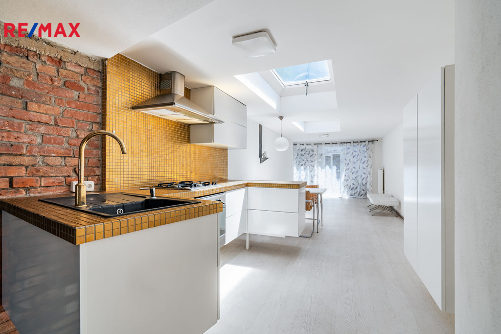 Prodej menšího rodinného domu 2+kk v Blučině, ul. Komenského s malým dvorkem, zajišťujícím maximální soukromí a malým vinným sklípkem. Řadový, patrový rodinný dům 2+kk s otevřenou dispozicí - loft, Blučina, ul. Komenského. Celková plocha pozemku 181 m2, užitná plocha domu cca 95 m2. Dům je ve výborném technickém stavu po rozsáhlé vnitřní i vnější rekonstrukci z r. 2011 (nová fasáda, nová střecha, nové rozvody vody, elektřiny a plynu, nová koupelna, podlahy, okna .....). Dům je napojen na veškeré sítě v obci. Vytápění zajištěno plynovým kombinovaným kotlem TUV + ÚT, topení kombinace radiátory a podlahové topení. Dispozice domu otevřená - loft. Do ulice je vchod a koupelna; obytná zóna je orientovaná na jih. V přízemí šatna, hala se schodištěm, navazuje kuchyň, jídelní kout a obývací pokoj. Odtud vstup na dvorek a sklípek. Zahrada je ve svahu. V horním patře je pak ložnice a WC. Obytná část je propojena s venkovním dvorkem, který umožňuje pohodlné venkovní posezení. Součástí domu je rovněž velmi příjemný vinný sklípek. Pozemek par. č. 33 zastavěná plocha 115 m2 a parc. č. 34 ostatní plocha 66 m2. Parkování je možné na pronajatém parkovacím místě pár metrů od domu. Velmi nízké měsíční náklady. Aktuální zálohy na energie: plyn 1.752 Kč, elektro 900Kč, voda 460 Kč. Možnost financování hypotékou. Výborné dopravní spojení do Brna. Malebná obec Blučina se nachází jen 19 km jižně od centra Brna, v Dyjsko-svrateckém úvalu. Severním okrajem obce protéká řeka Litava. Žije zde přibližně 2 300 obyvatel. Blučina se nachází nedaleko dálnice D2, lze z ní odbočit na exitu 11 – Blučina a za 15 minut jste případně v OC Olympia Brno. V obci se nachází krytý bazén (17 × 8 metrů) a je zde bohatá občanská vybavenost, která se neustále rozvíjí, obchody, škola, školka, pošta. Volné ihned. Pro více informací volejte realitního makléře.