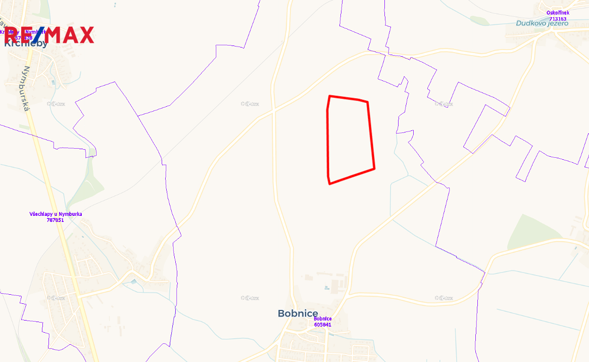 Prodej podílu pole, to jest 154 847 m2, 55 Kč/m2, Bobnice, okres Nymburk.