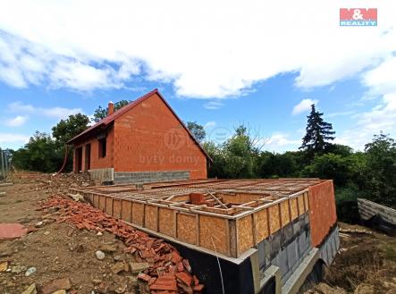 Nabízíme k prodeji pozemek včetně hrubé stavby rodinného domu, v budoucí řadě tří rodinných domů, v Bohatých Málkovicích, o celkové výměře 408 m2, která je situována na okraji obce, ve směru na Vyškov. Patrový dům, o dvou podlažích s podkrovím, s dispozicí 4+kk, je dle projektové dokumentace navržen následovně: garáž, dvě koupelny, tři toalety, technická místnost, tři ložnice, obývací pokoj s kuchyňským koutem a podsklepenou terasou, orientovanou východním směrem, do zahrady, přes celou šíři domu. Hrubá stavba je postavena z pálených cihel a střecha je kryta pálenými taškami. Přípojky na elektřinu a plyn jsou na hranici pozemku, voda je z vlastní, kopané studny a odpady budou svedeny do veřejné kanalizace, která se v obci právě zřizuje, s termínem dokončení prosinec 2026. Pro více informací kontaktujte RK.